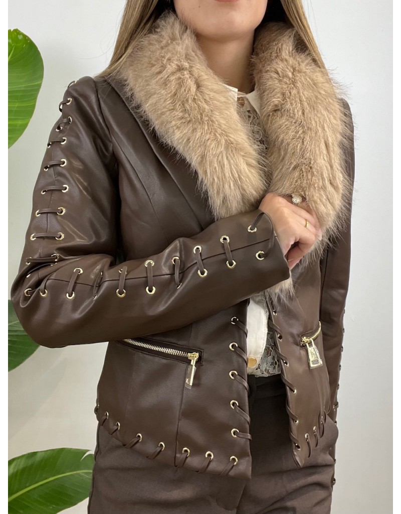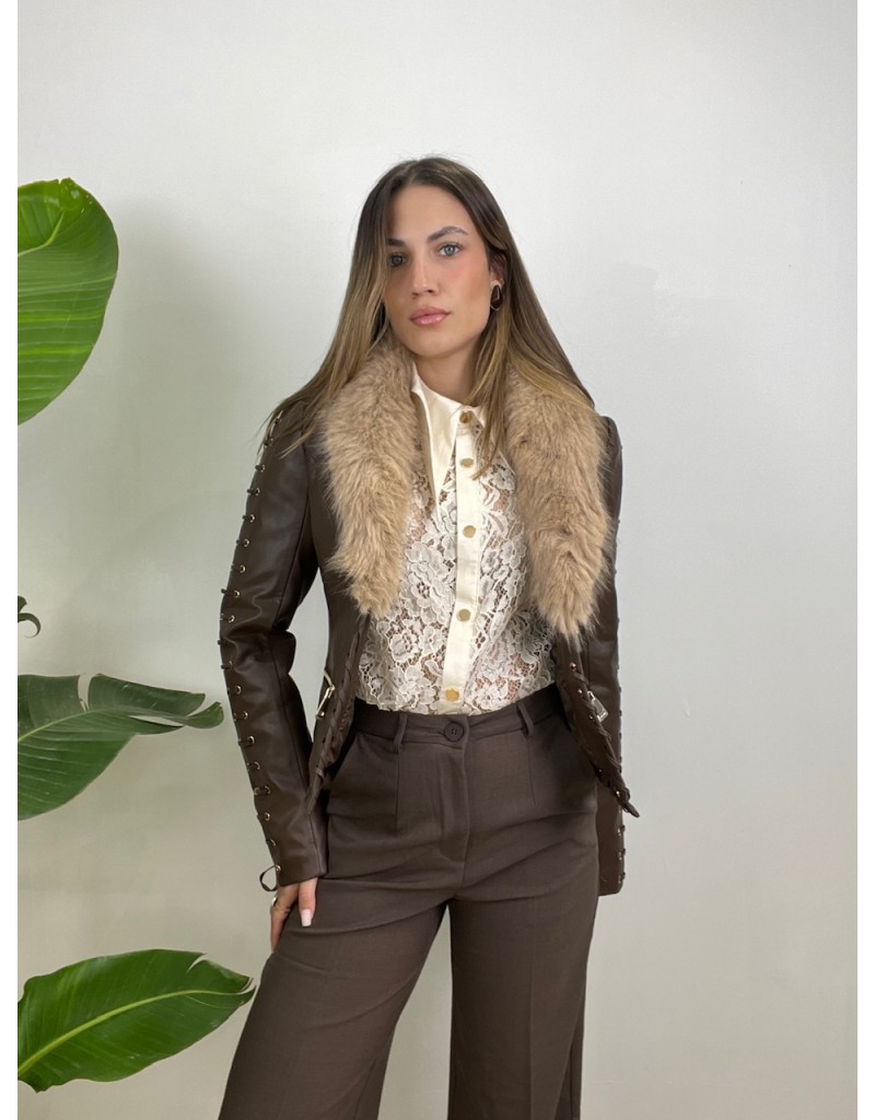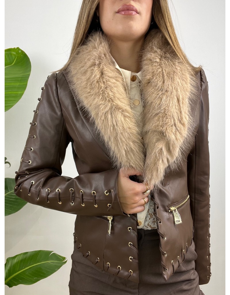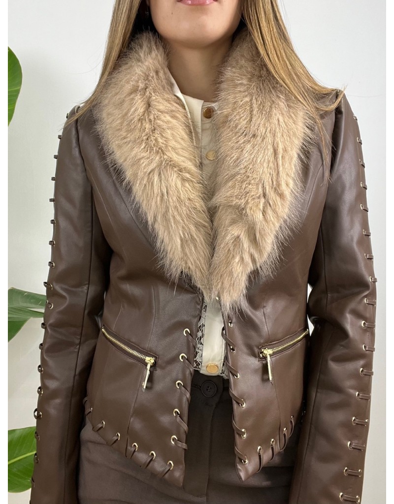 Jacket trapuntata internamente con collo in ecopelliccia.
