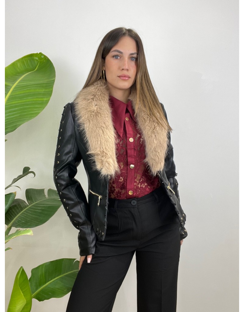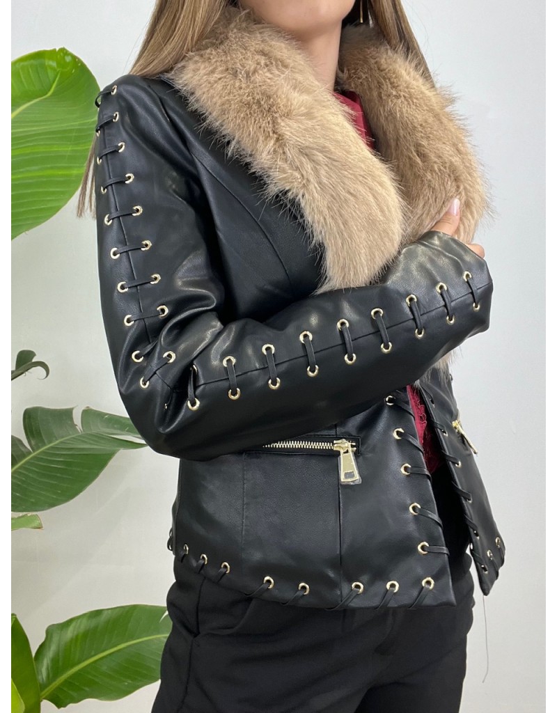 Jacket trapuntata internamente con collo in ecopelliccia.