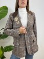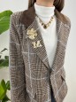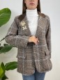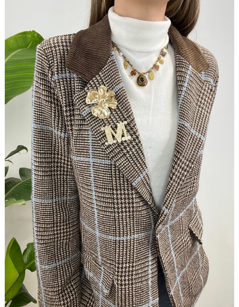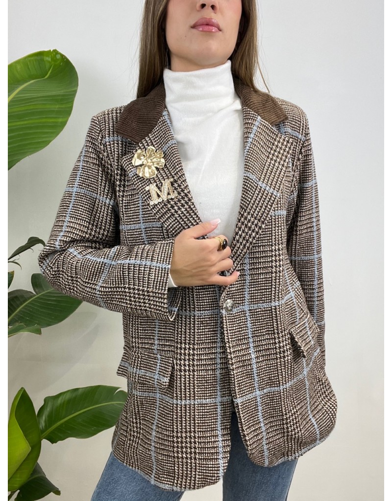 Blazer a fantasia con spilla e collo in velluto millerighe.