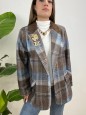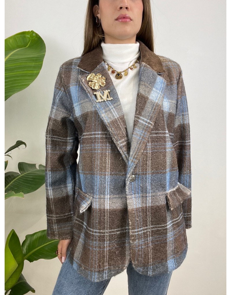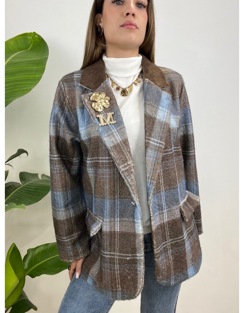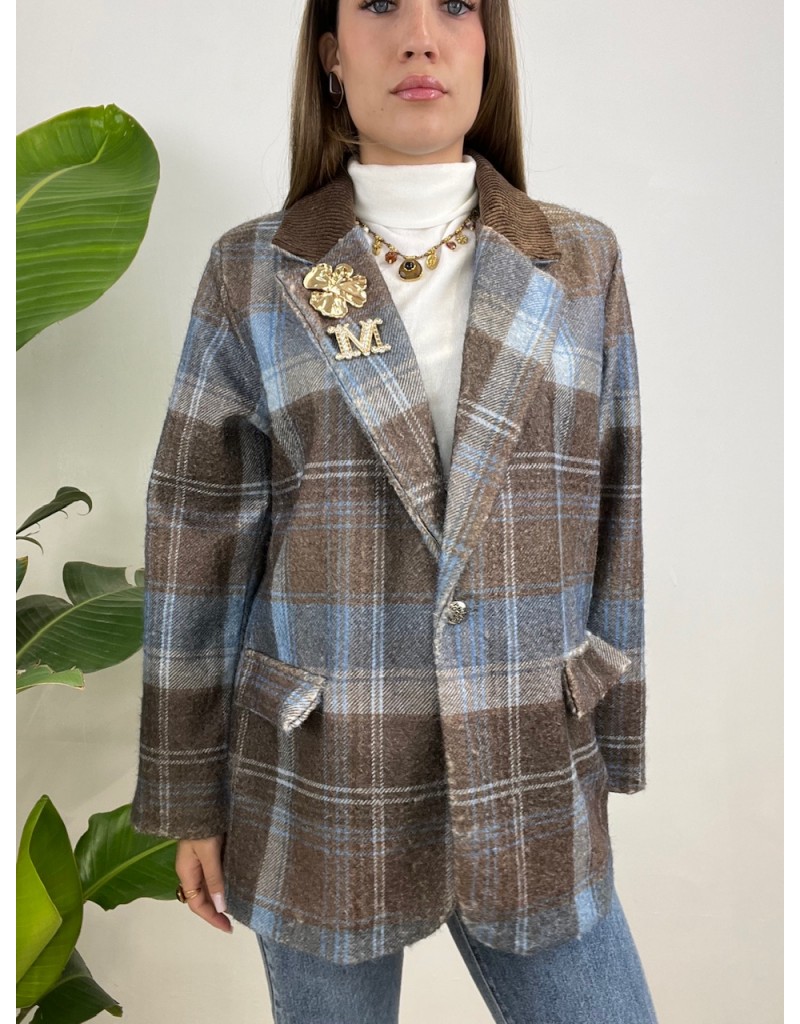Blazer a fantasia con spilla e collo in velluto millerighe.