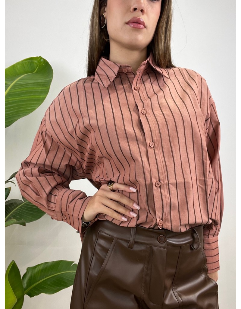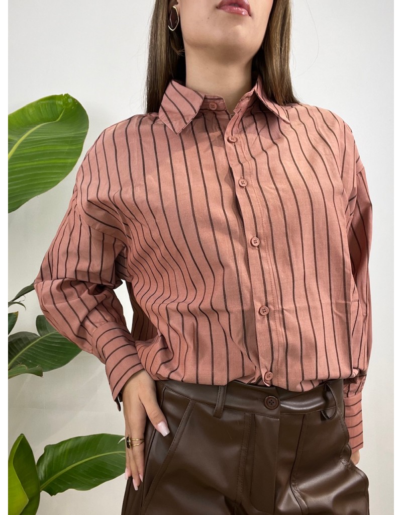 Camicia a righe, taglio regular, con risvoltino a contrasto colore.