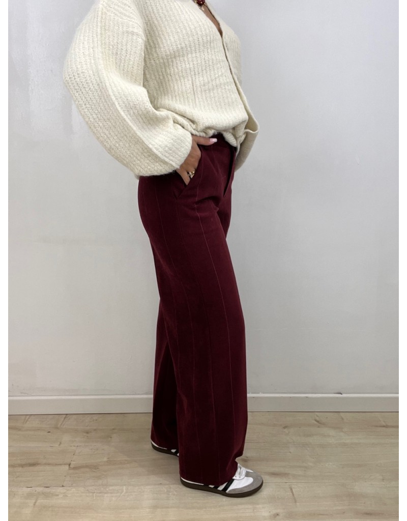Pantaloni in tessuto morbido fustagnina, in fantasia gessata.