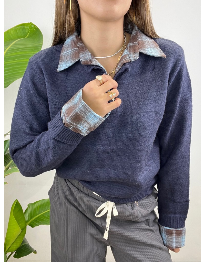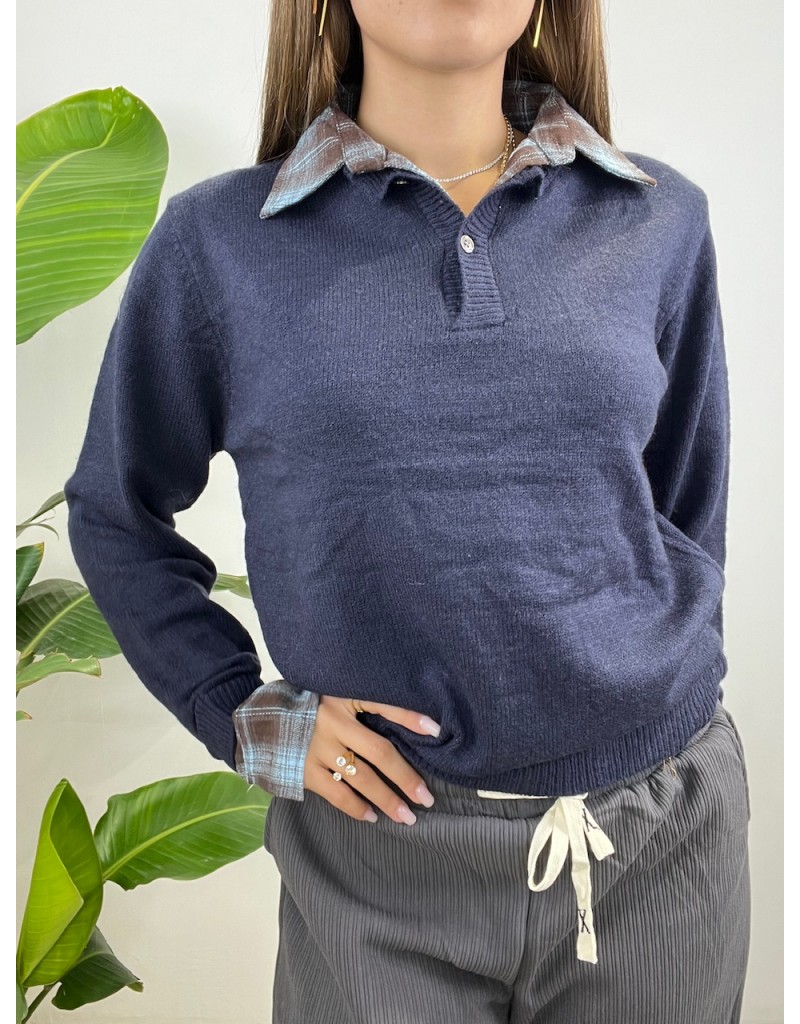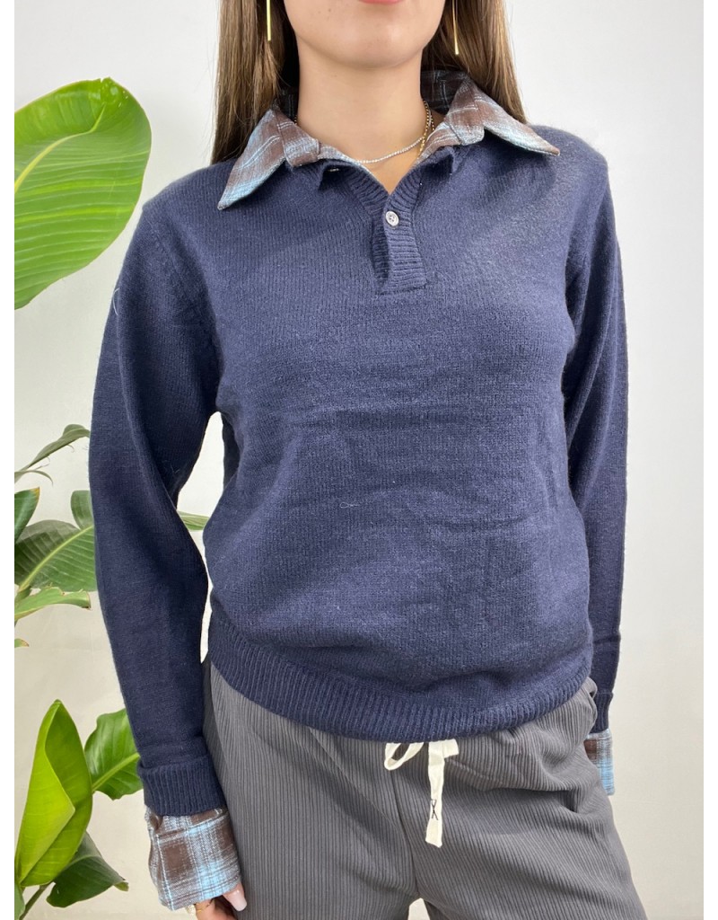 Pullover con collo camicia.