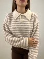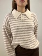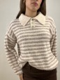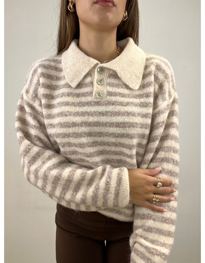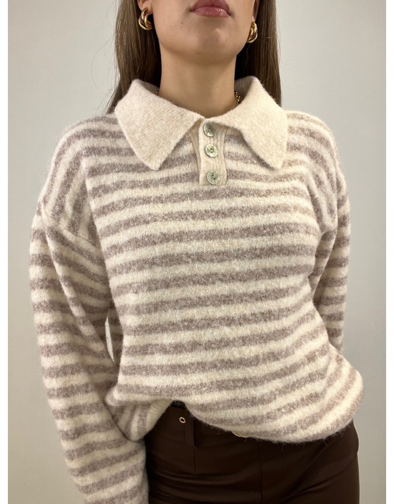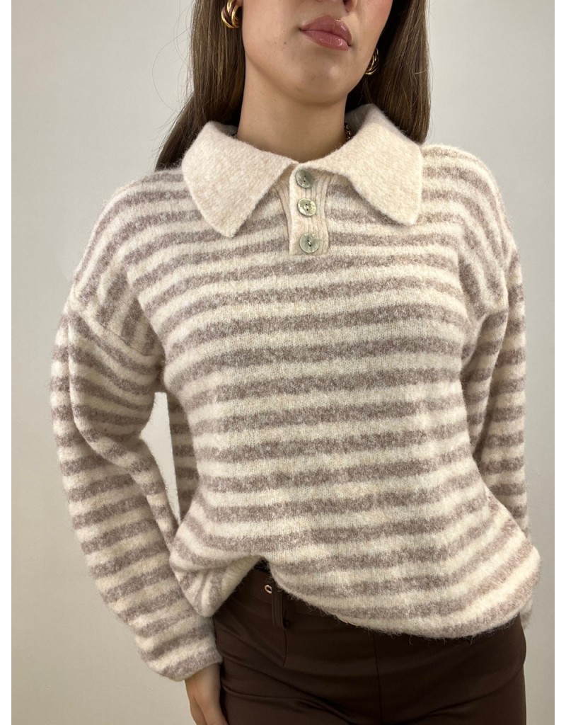 Pullover modello polo a righe in tessuto morbido e caldo.