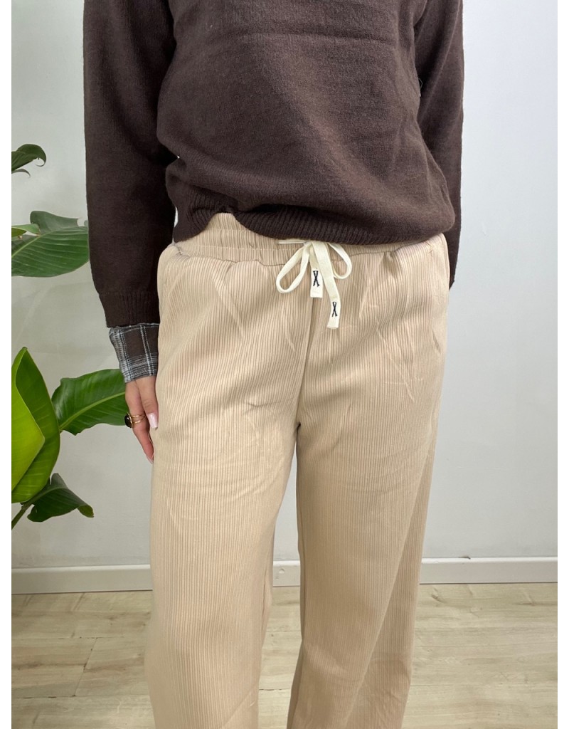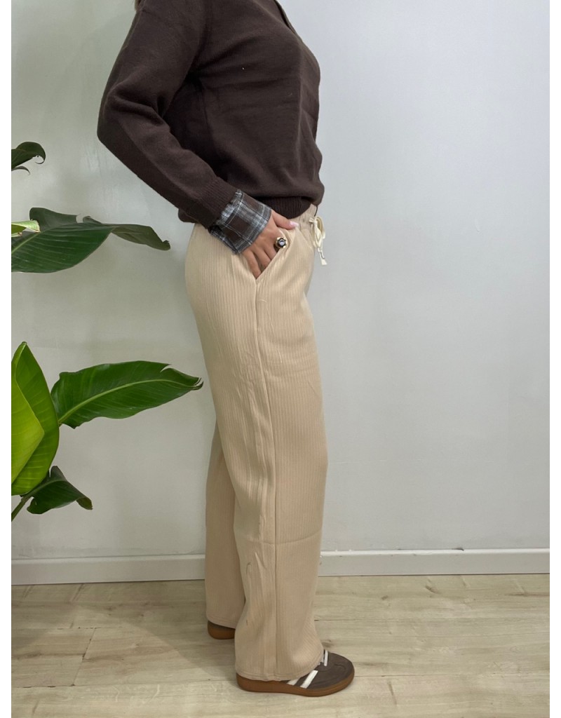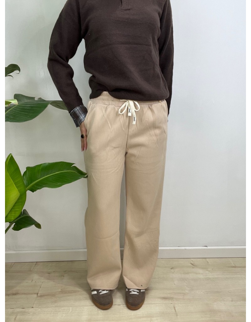 Pantaloni a costine con molla in vita. Tessuto caldo.