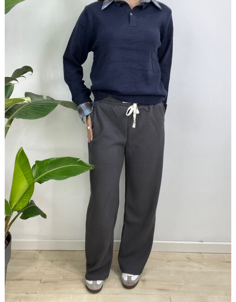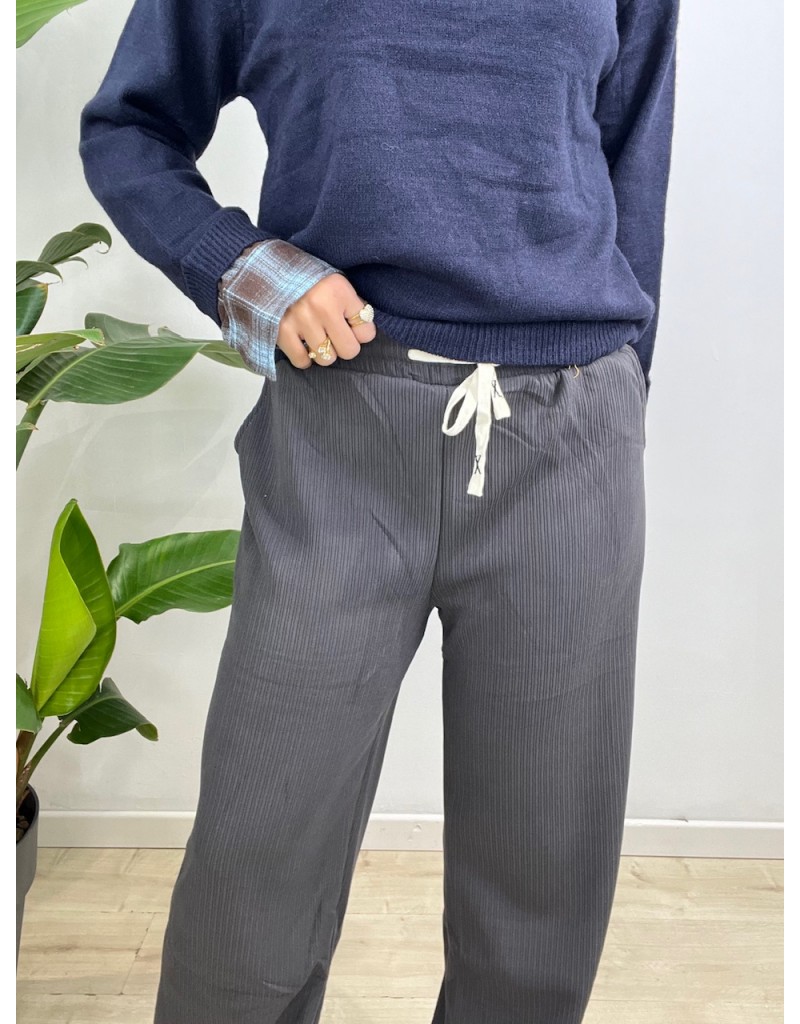 Pantaloni a costine con molla in vita. Tessuto caldo.