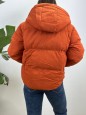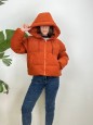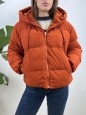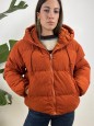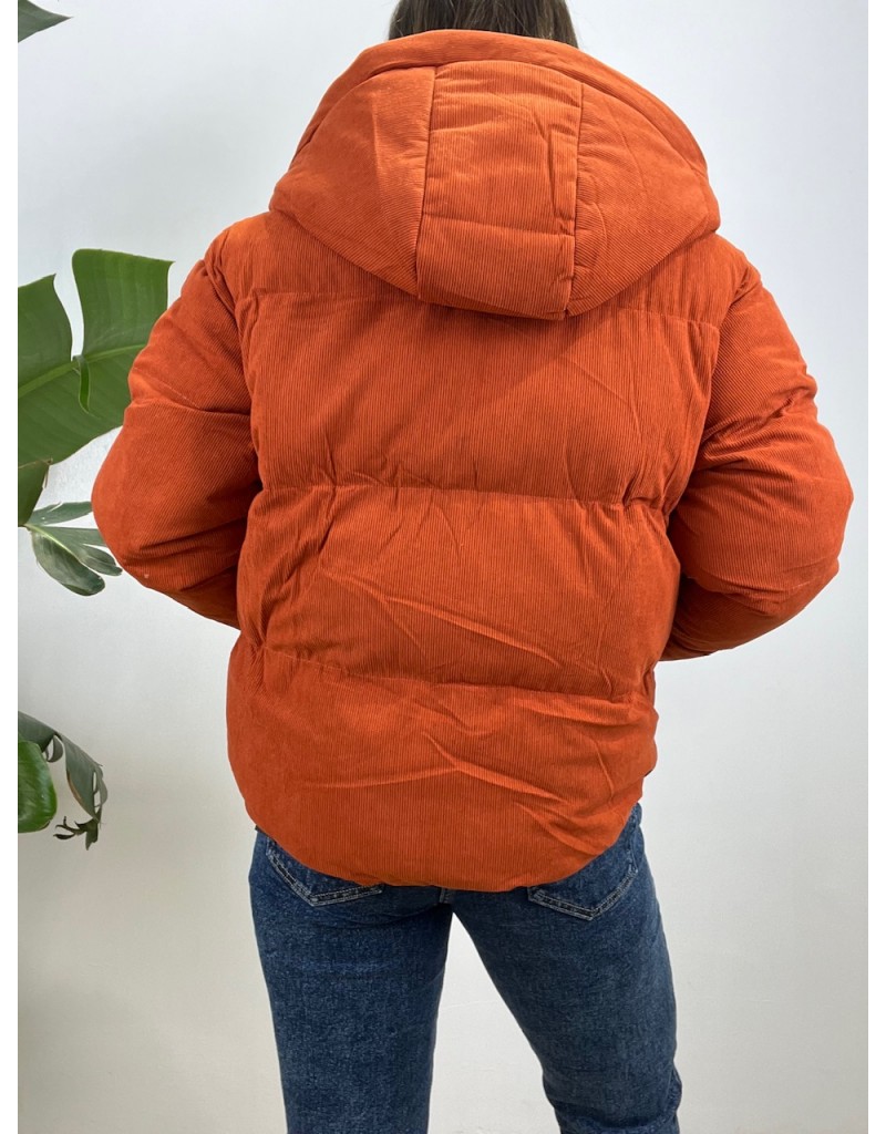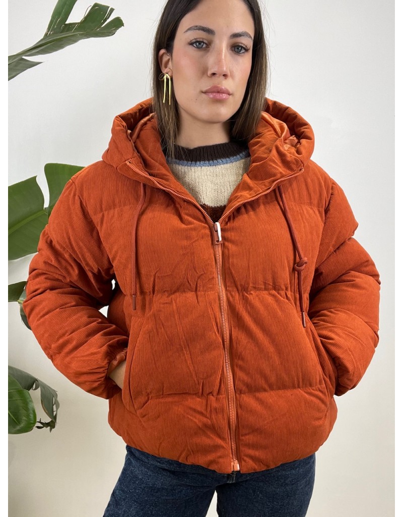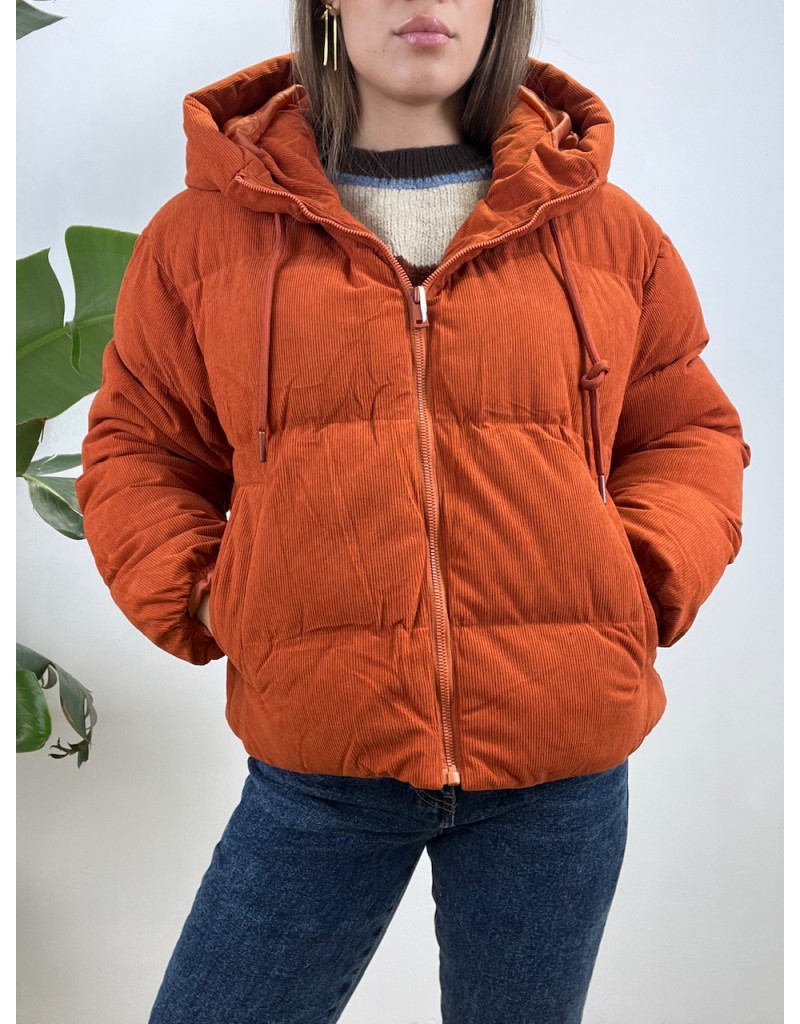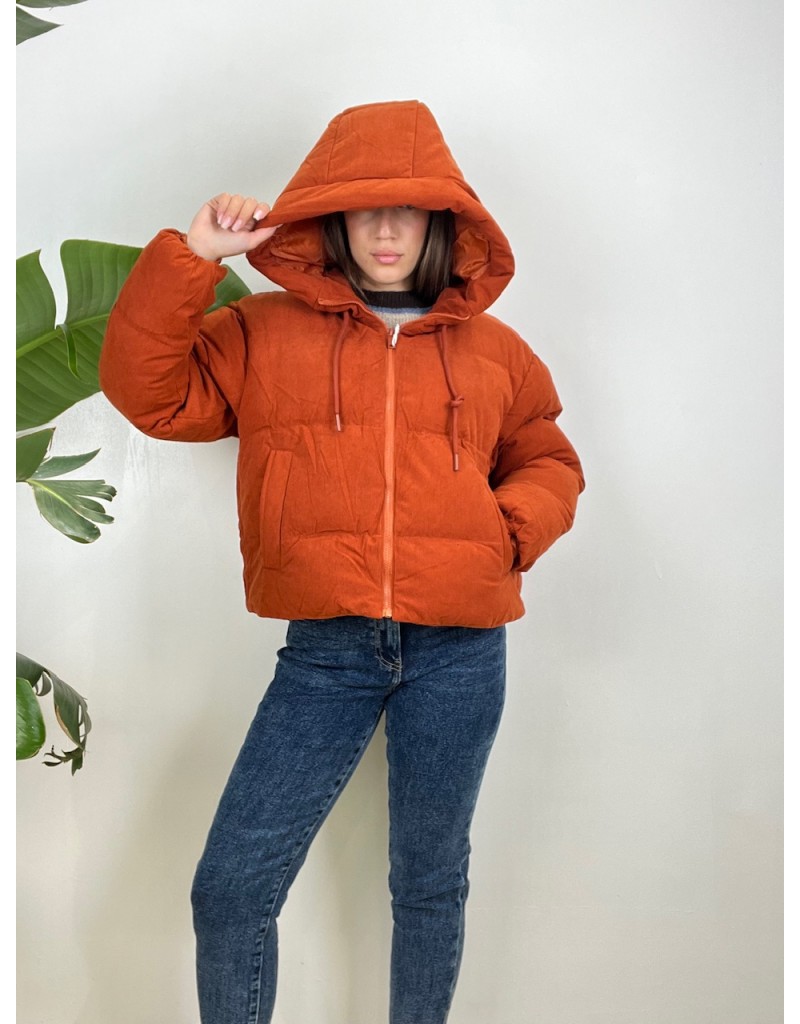 Giubbino modello bomber con cappuccio estraibile e esterno in vellutino millerighe.