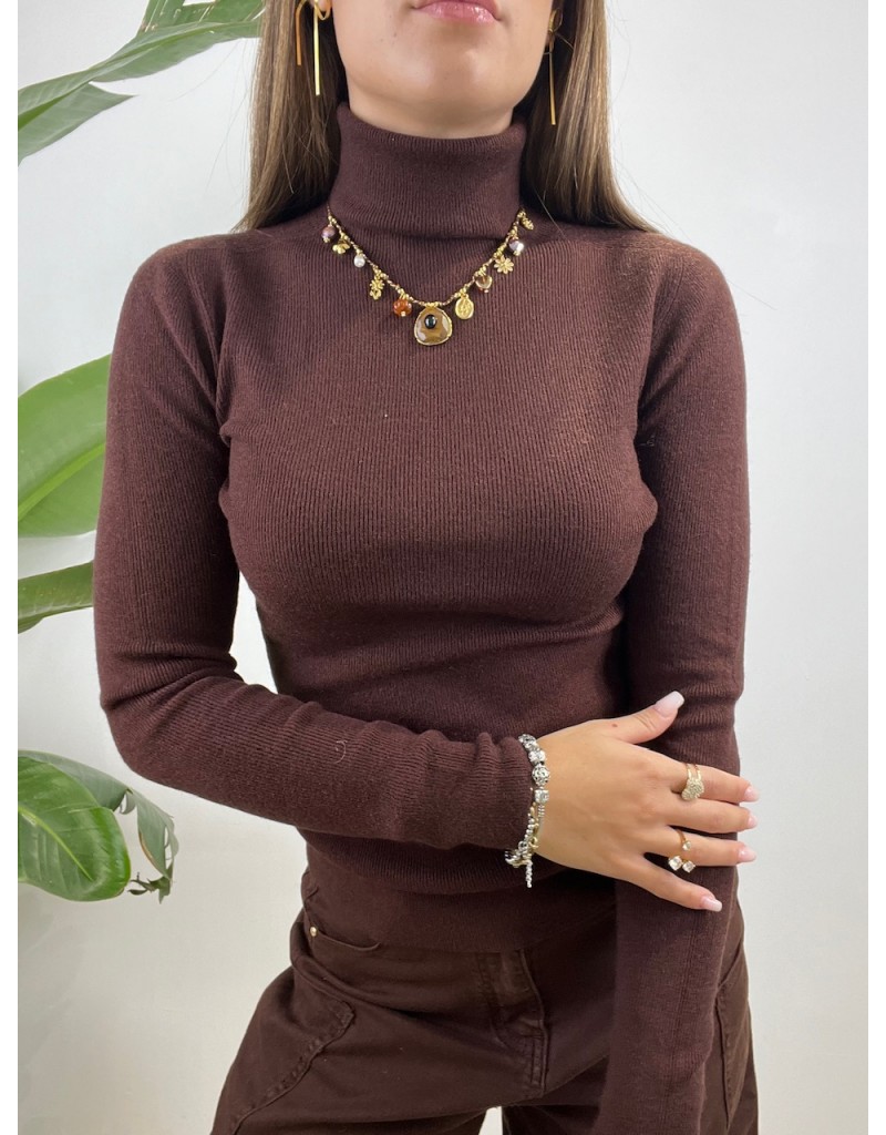 Pull semplice a costine dolcevita in maglia. Qualità superiore.