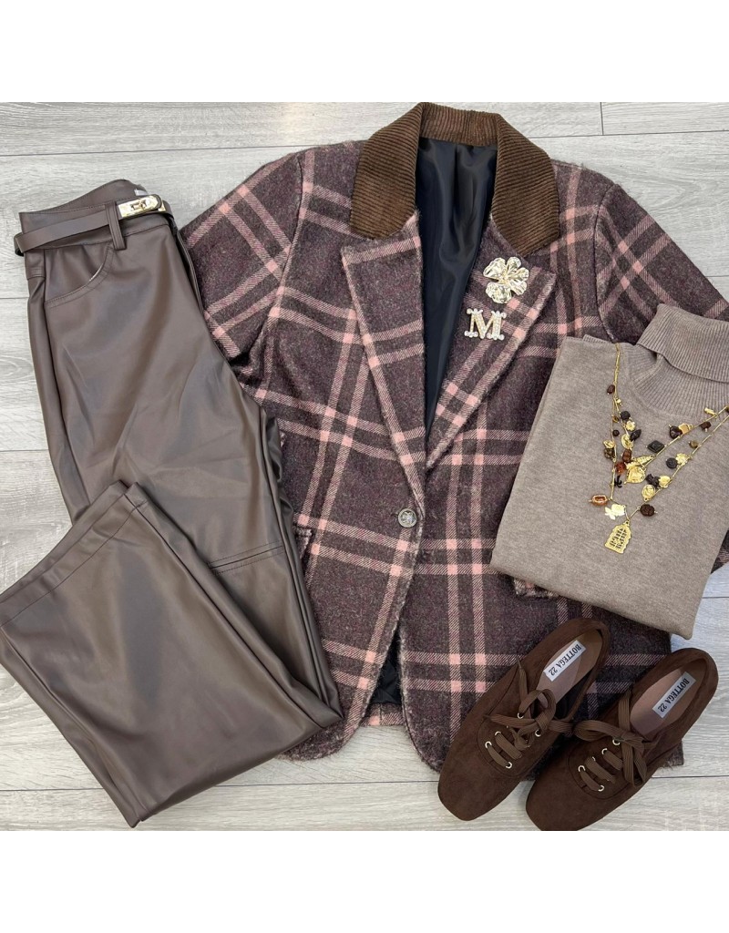 Blazer a fantasia con spilla e collo in velluto millerighe.