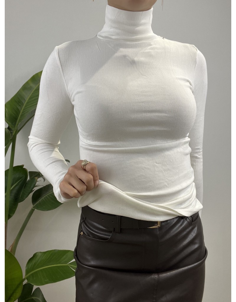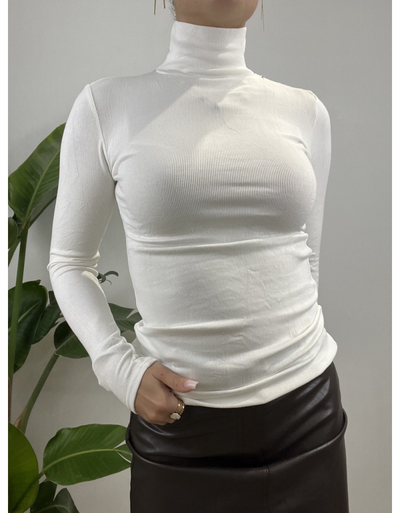 Maglia a costine modello dolcevita con pile interna