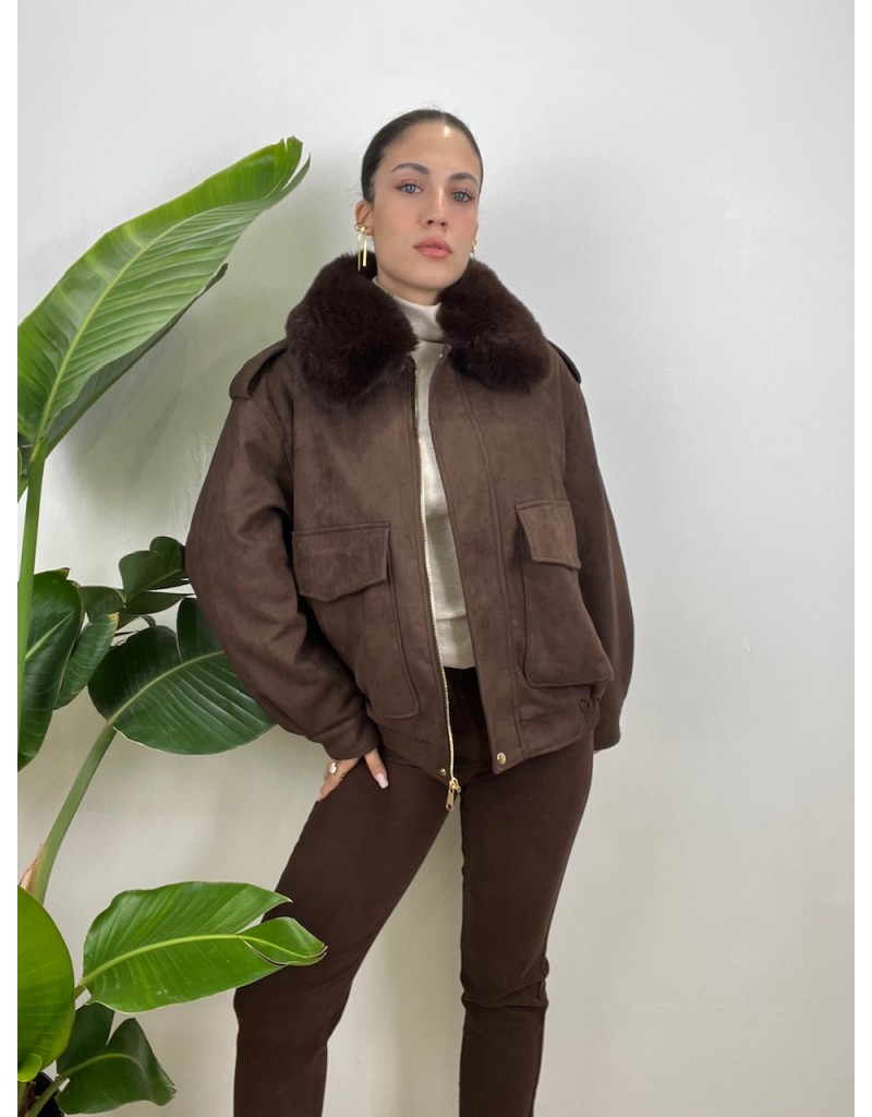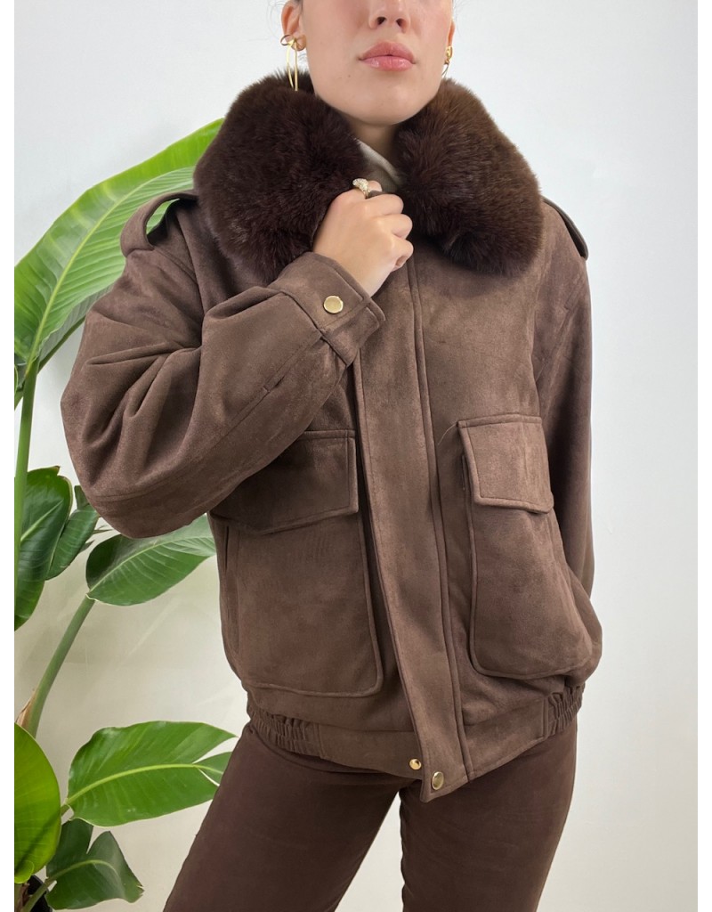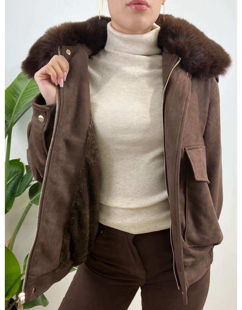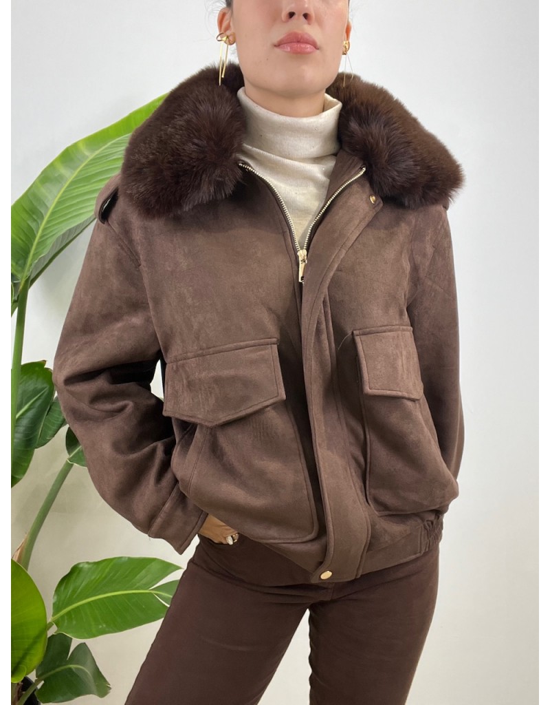 Giubbino EcoCamoscio con collo in pelo lungo.