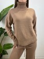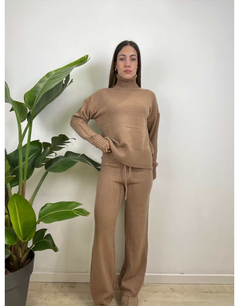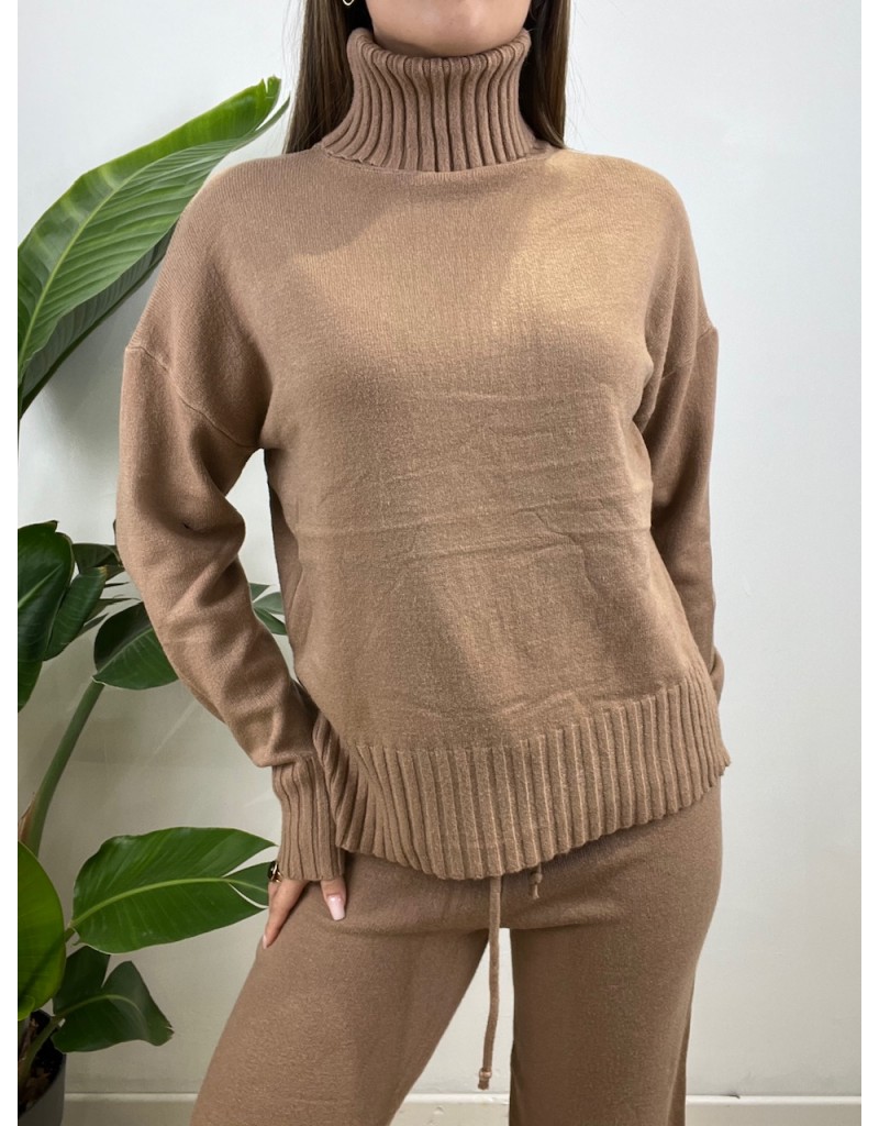 Coordinato in maglia, modello semplice con collo alto e tessuto caldo.