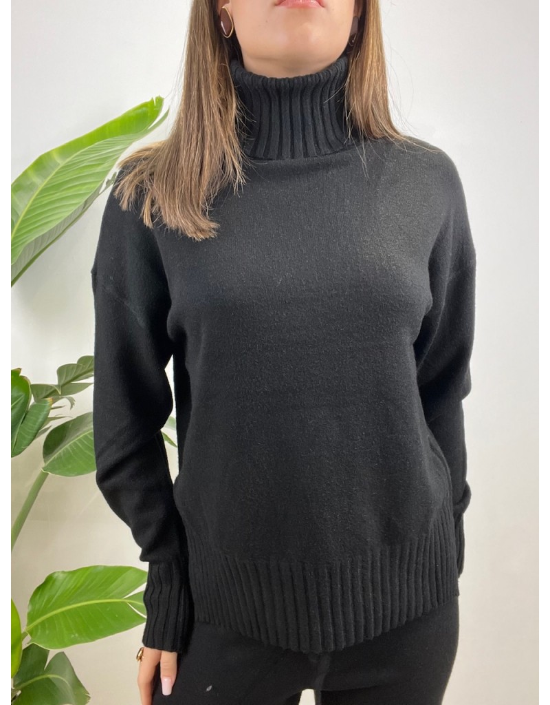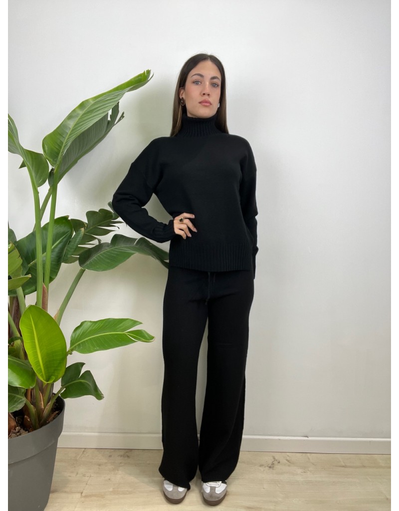 Coordinato in maglia, modello semplice con collo alto e tessuto caldo.
