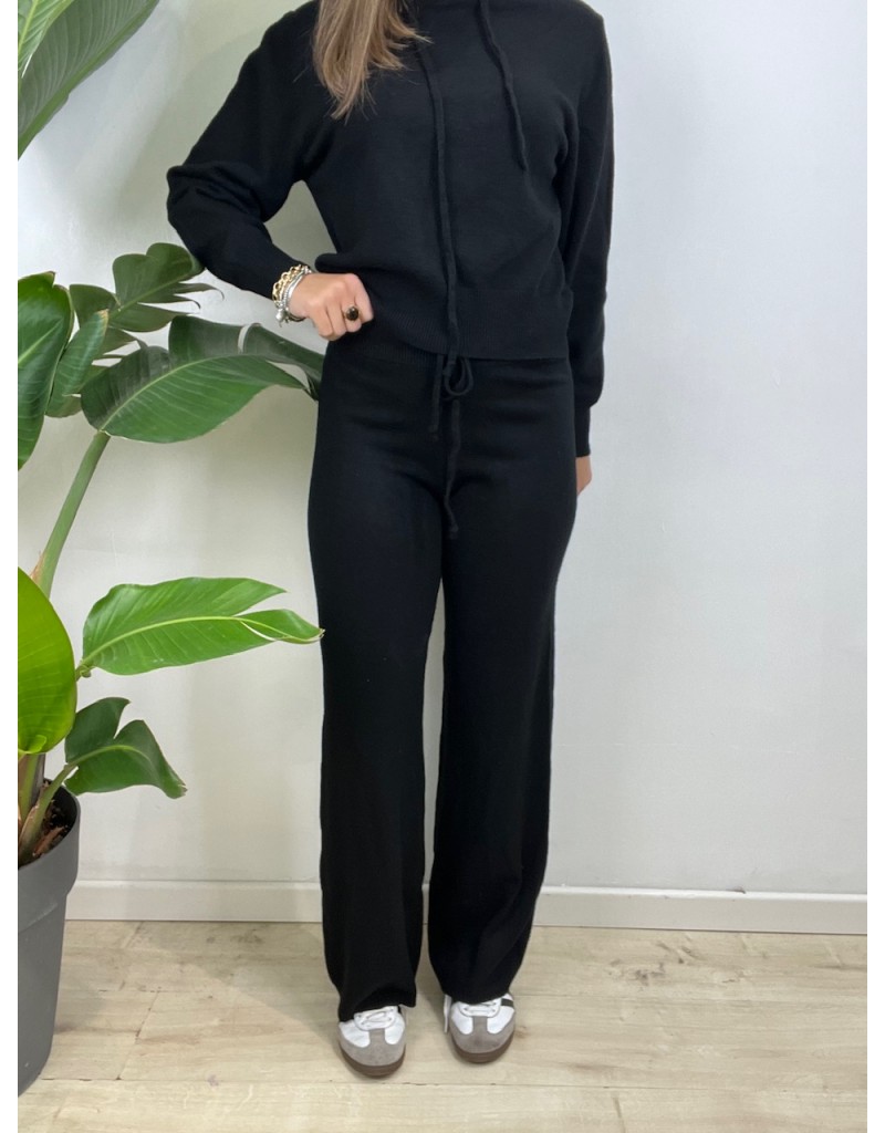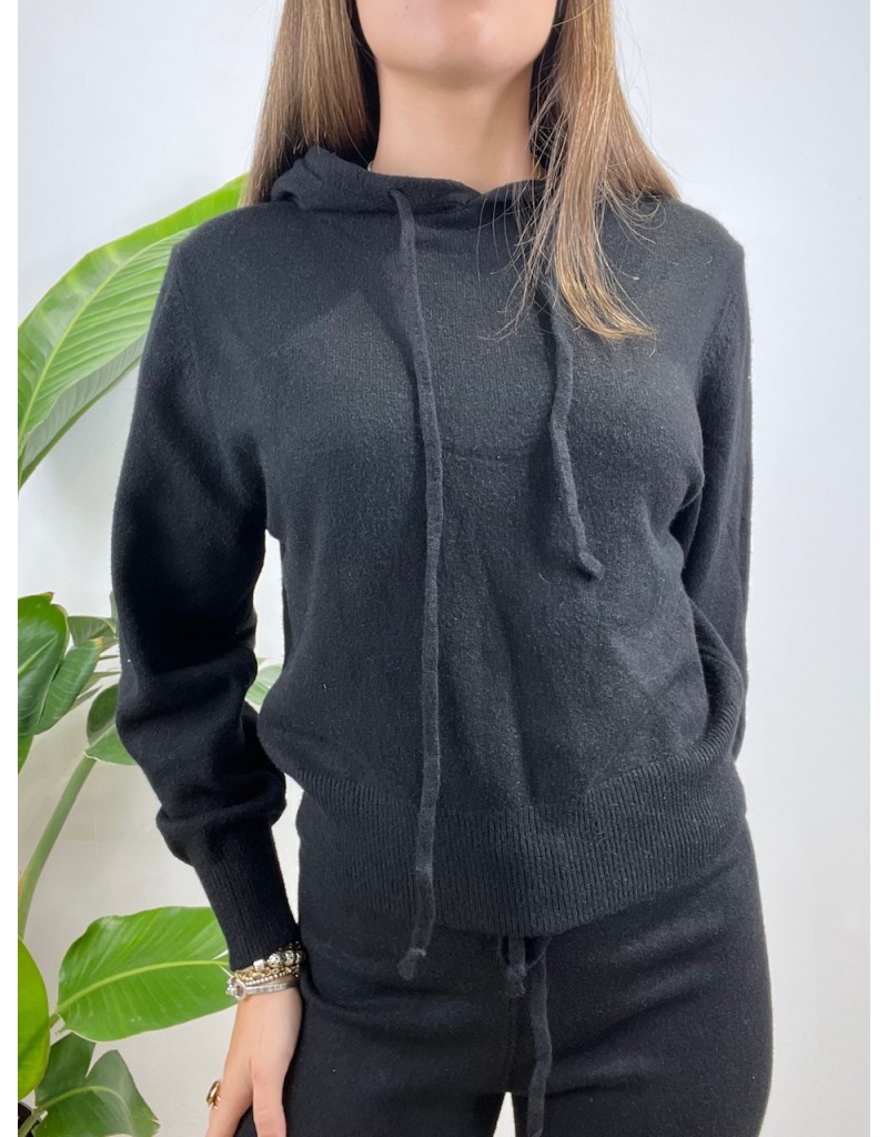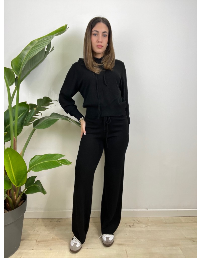 Coordinato in maglia, modello semplice con cappuccio e tessuto caldo.
