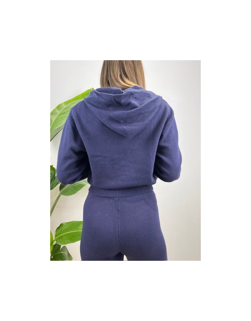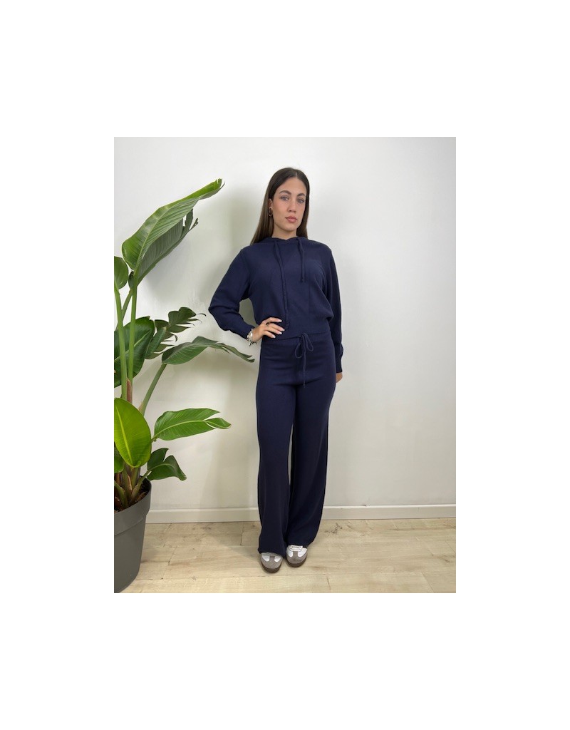 Coordinato in maglia, modello semplice con cappuccio e tessuto caldo.