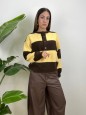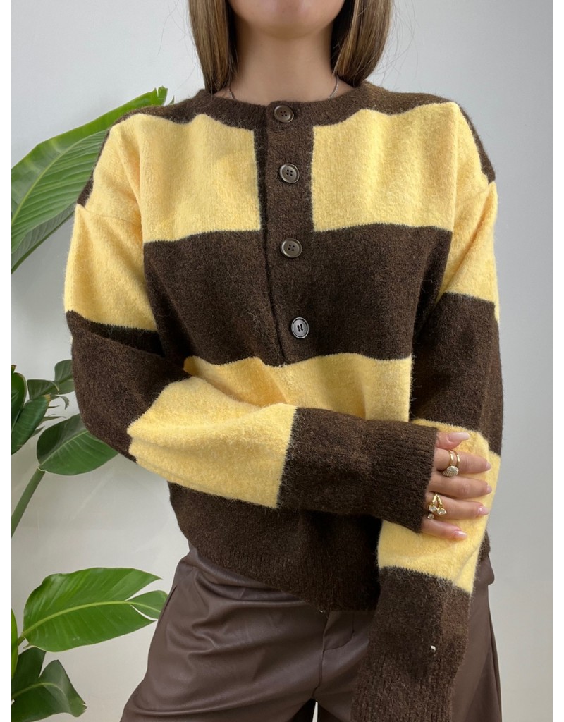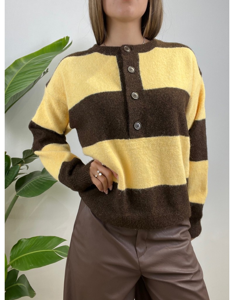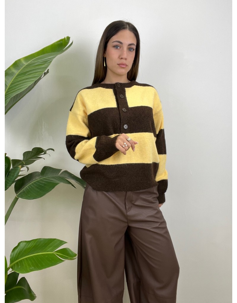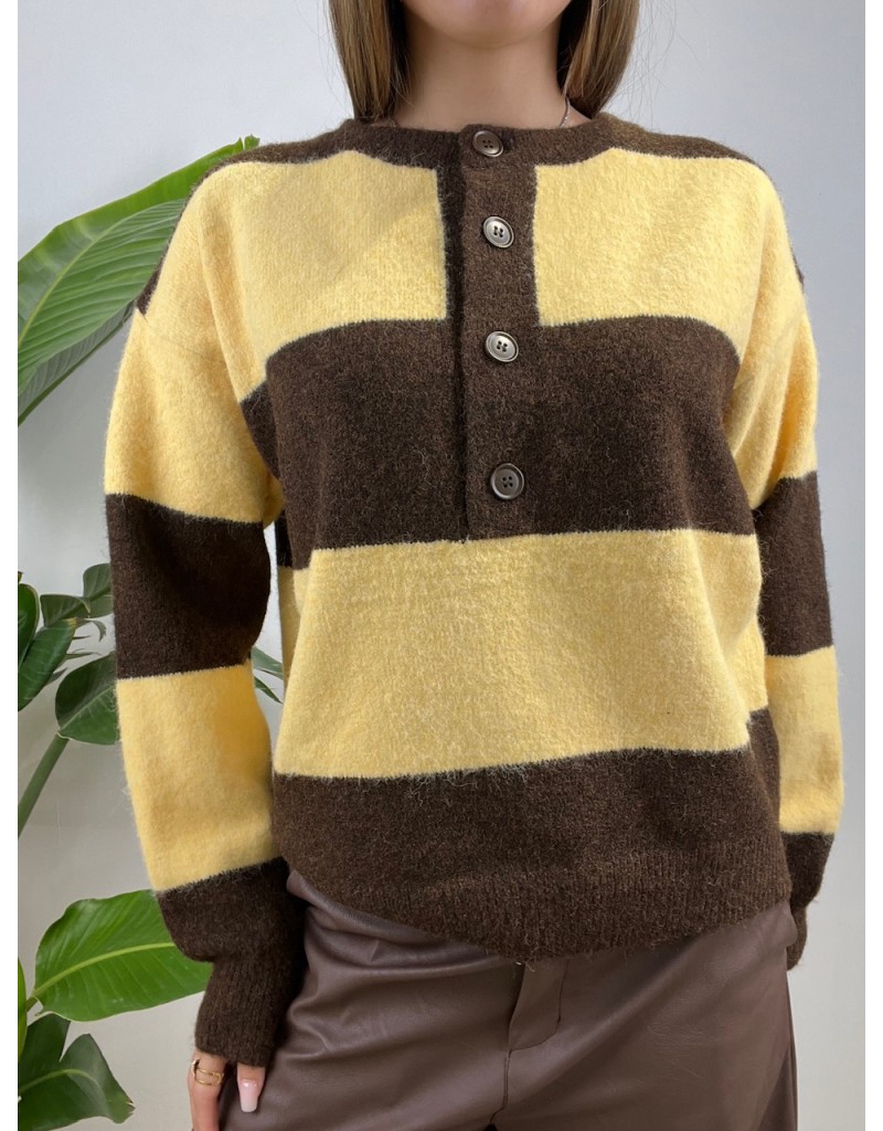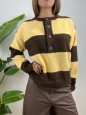 Pullover in maglia a fasce colorate con girocollo e 4 bottoncini.