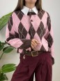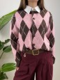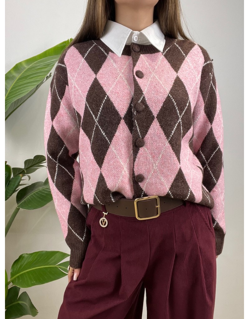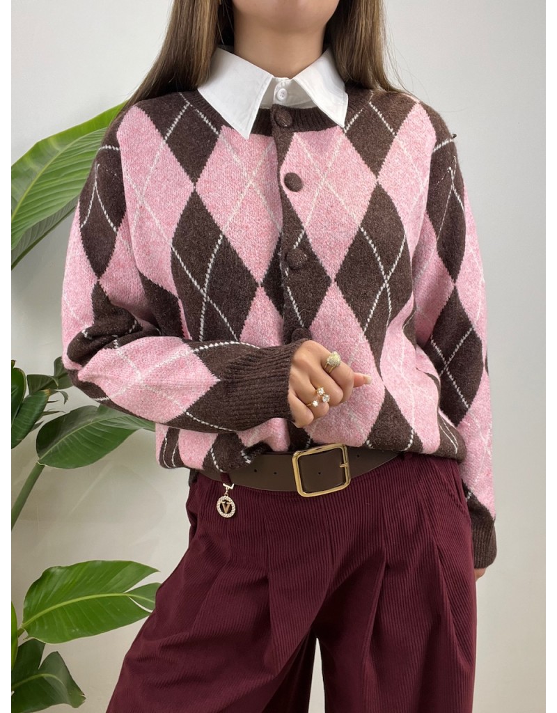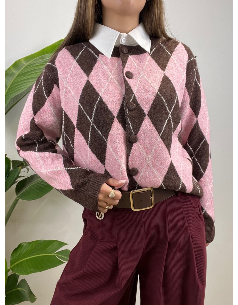 Cardigan con rombi in maglia grossa, modello girocollo.