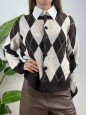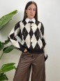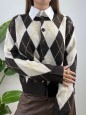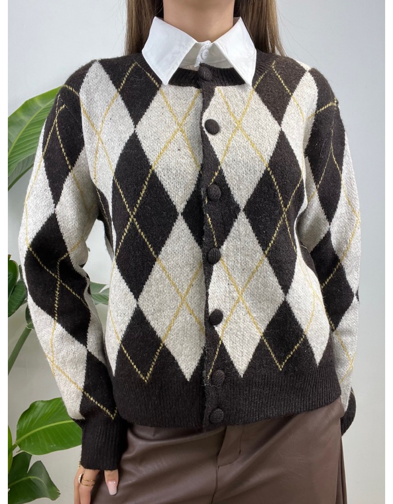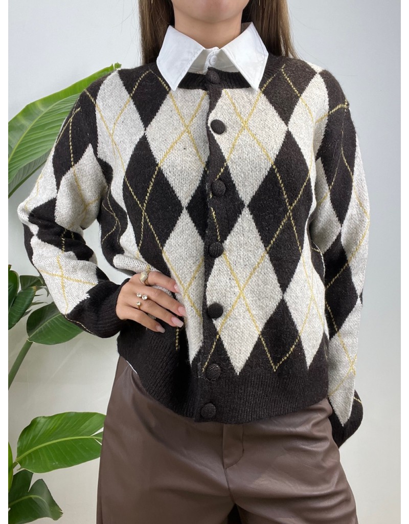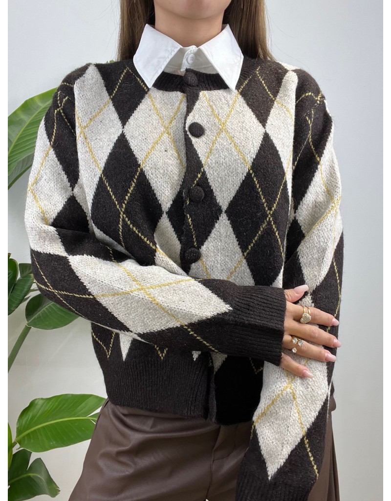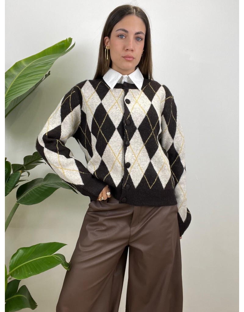 Cardigan con rombi in maglia grossa, modello girocollo.