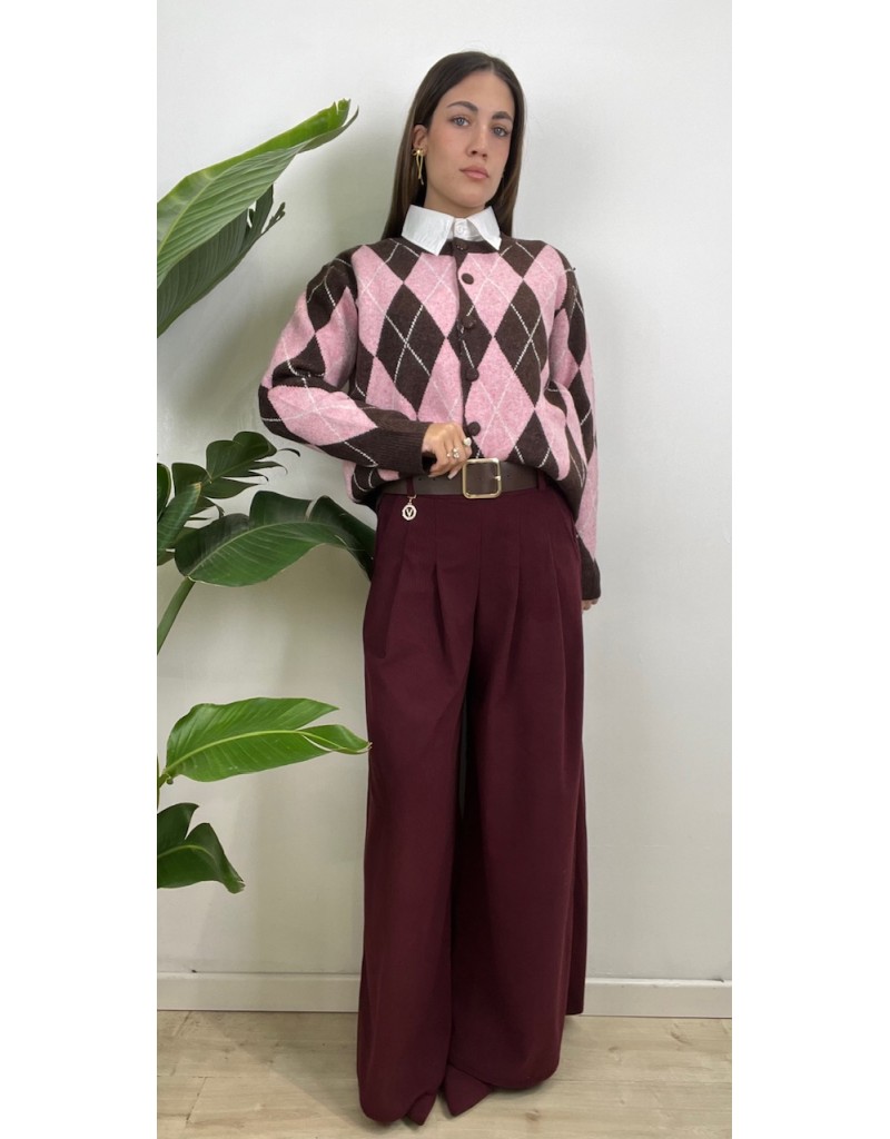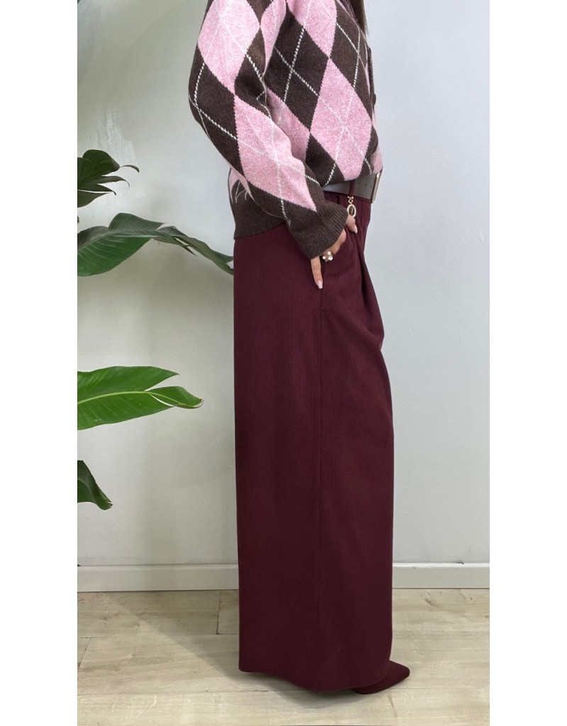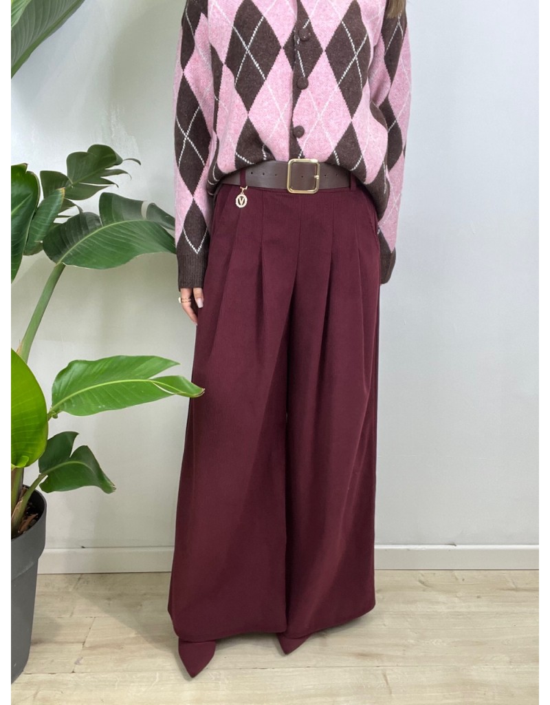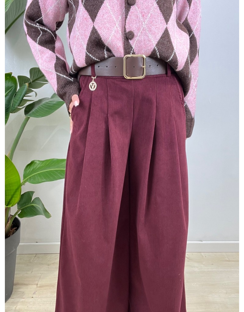 Pantaloni in velluto millerighe, con molla in vita e cinturone.