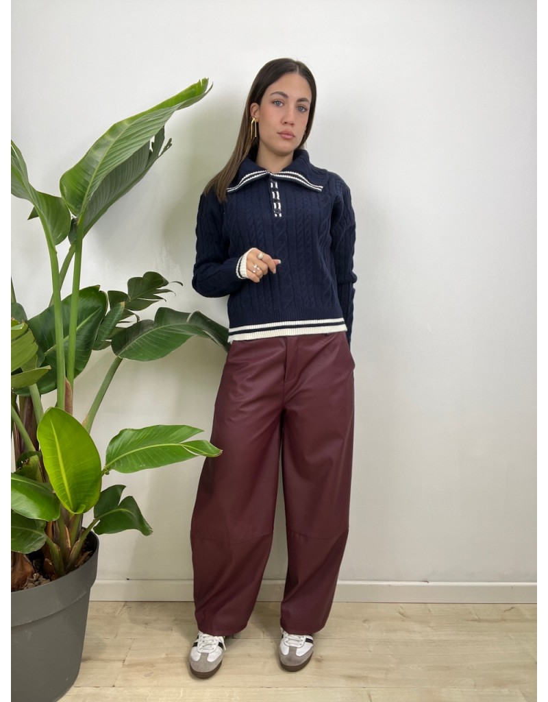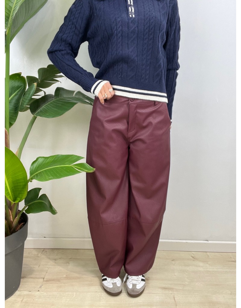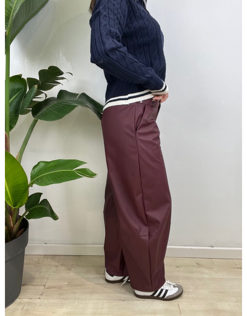 Pantaloni in ecopelle con molla in vita e gamba morbida.