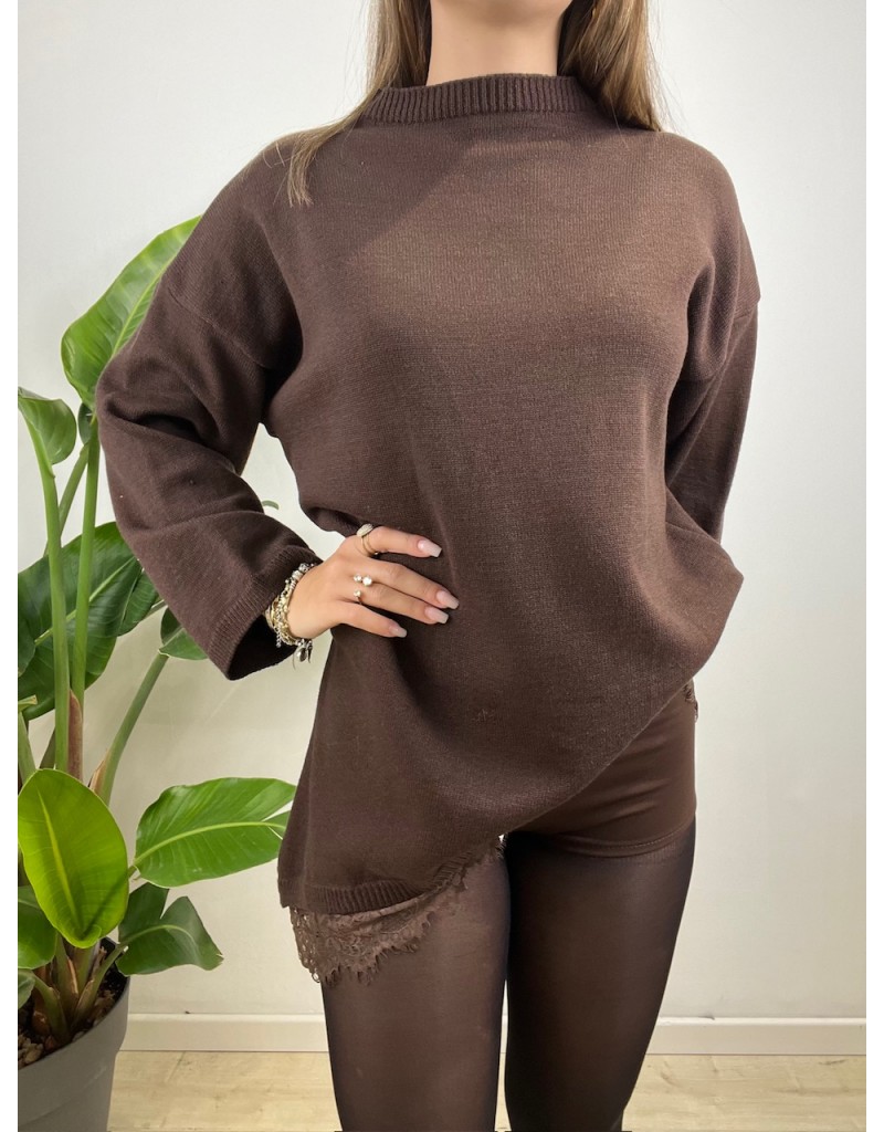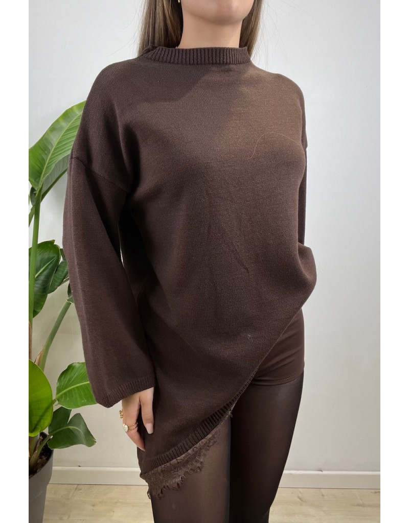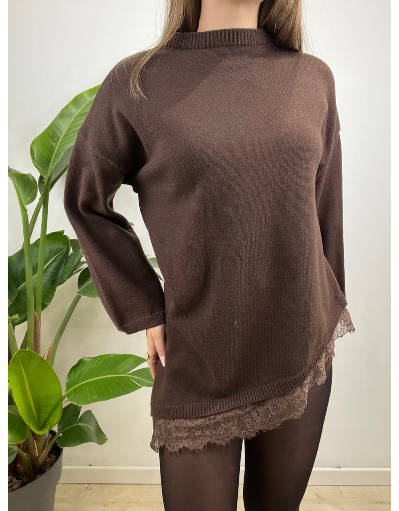 MAxi pullover modello asimmetrico con pizzo.