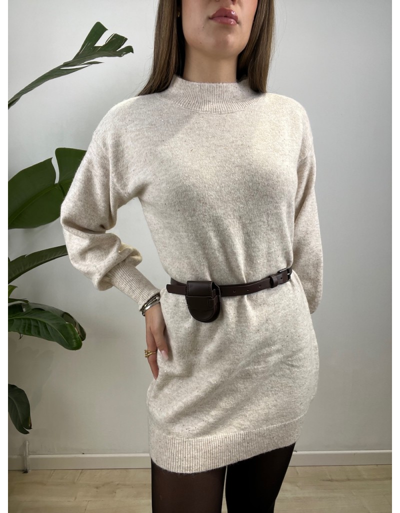 Pull modello dress con laminato interno e cintura in colore nero o marrone (a seconda disponibilità).
