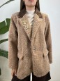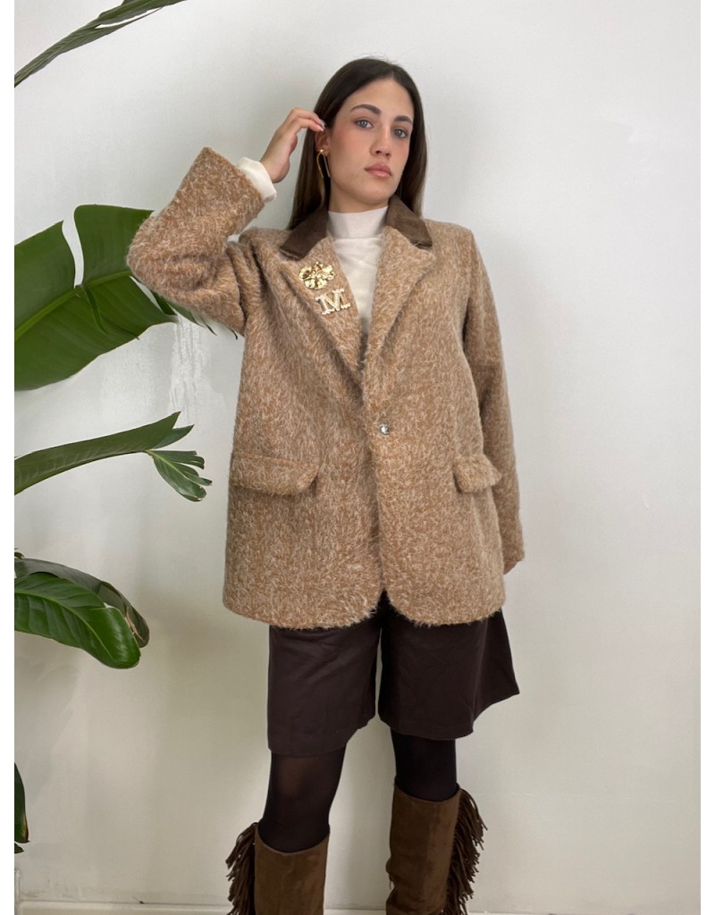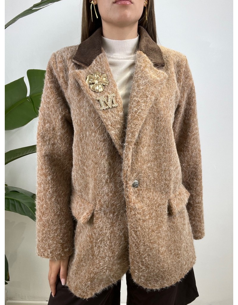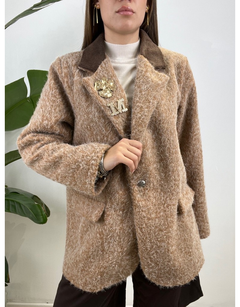 Blazer a fantasia con spilla e collo in velluto millerighe.