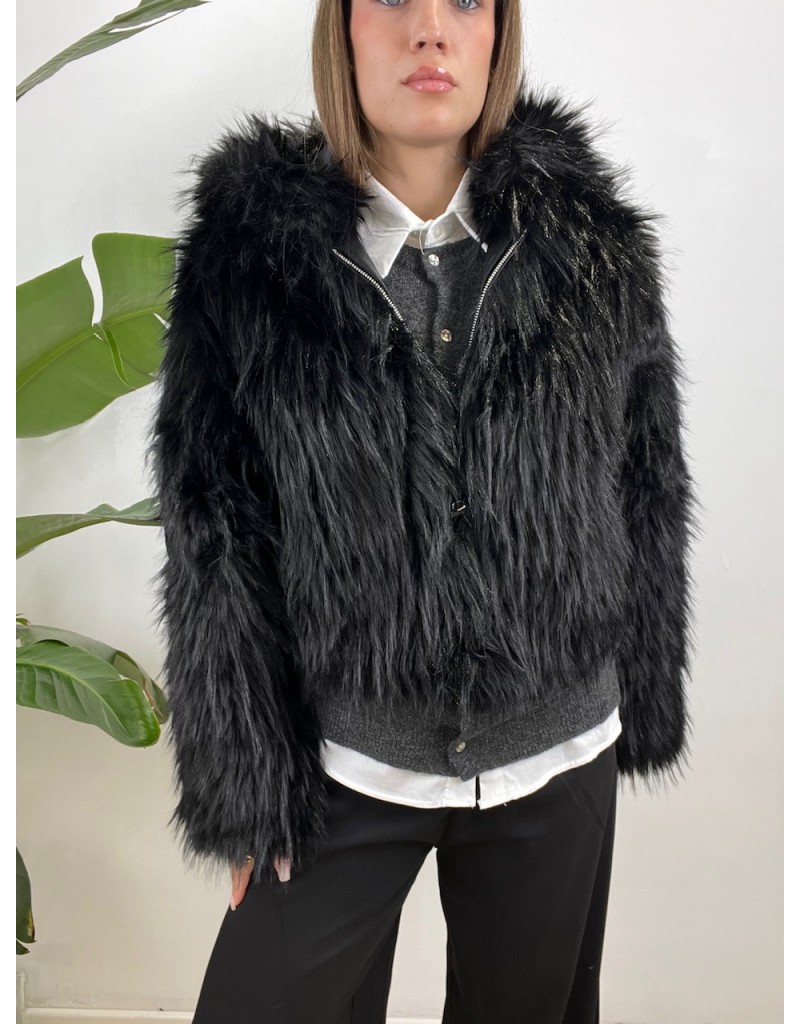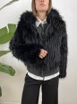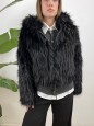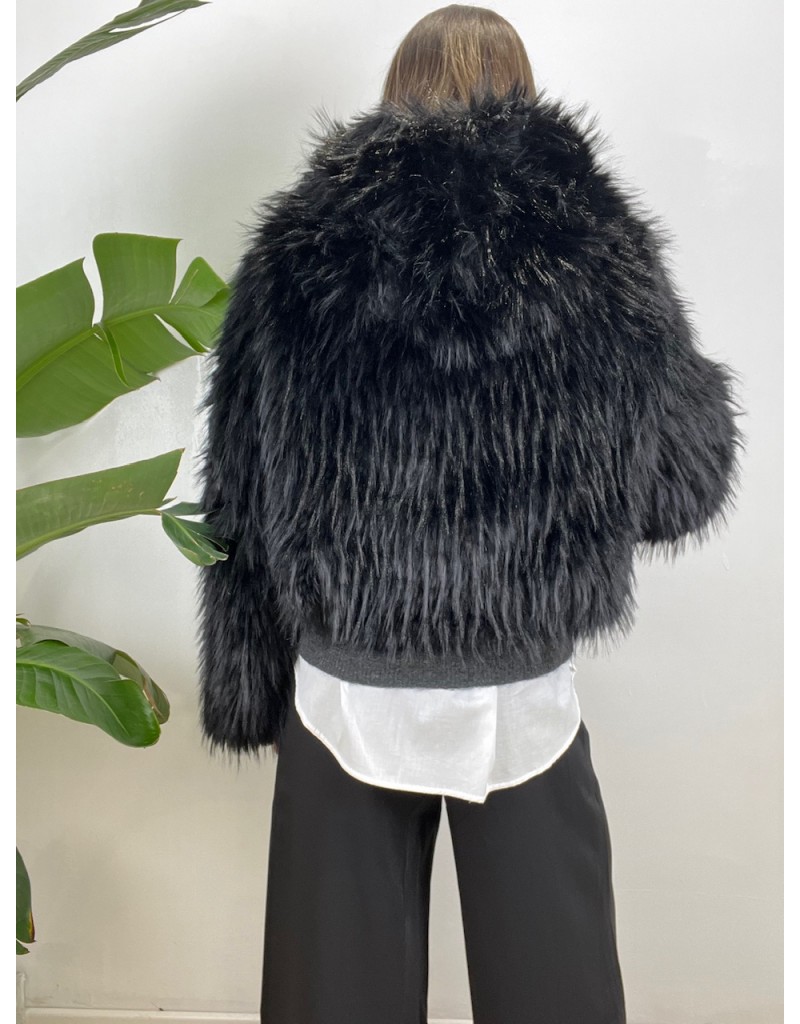 Ecopelliccia con pelo lungo e cappuccio.
