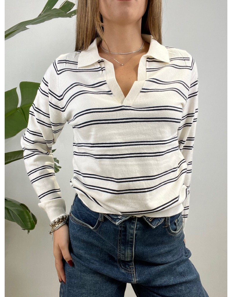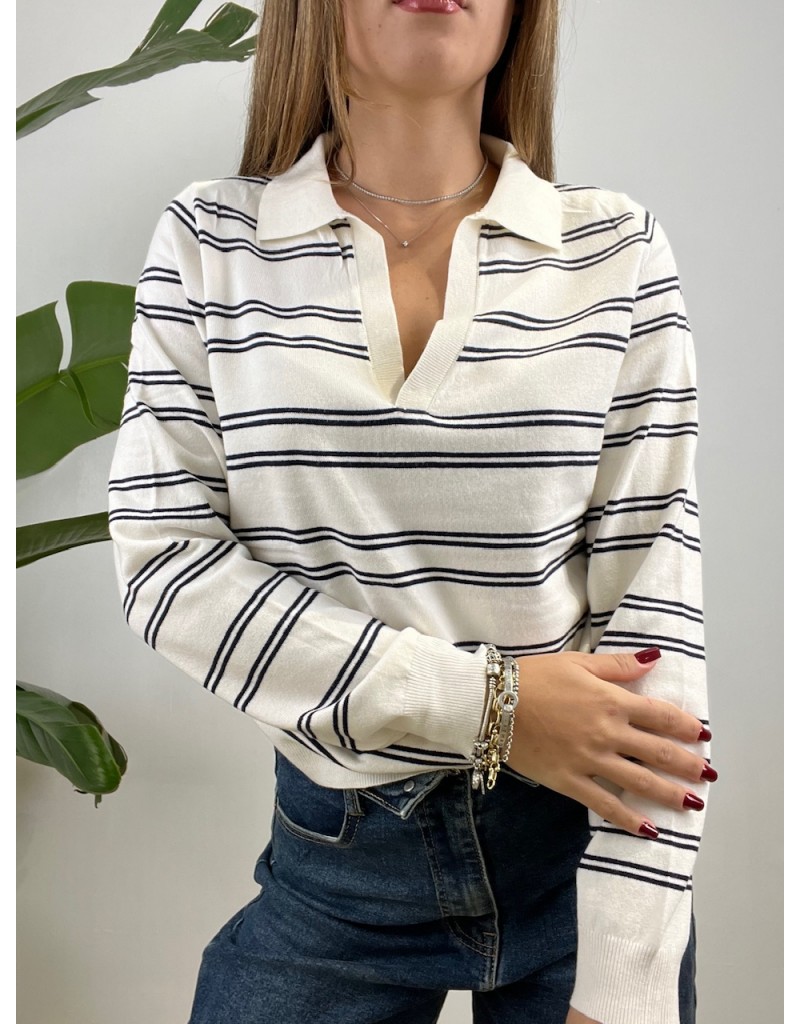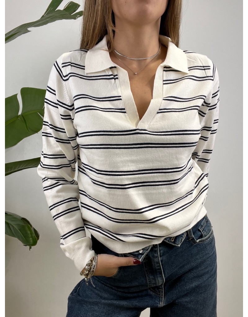 Pullover modello polo in maglia rasata.