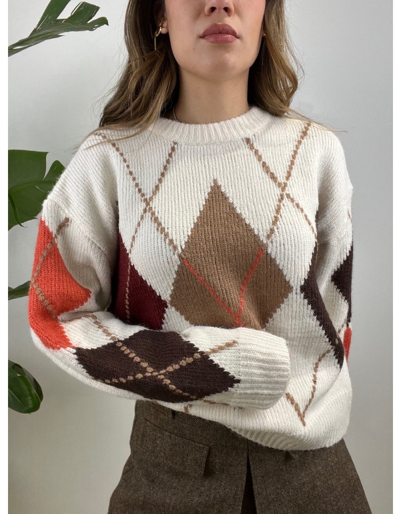Pullover modello girocollo con rombi.