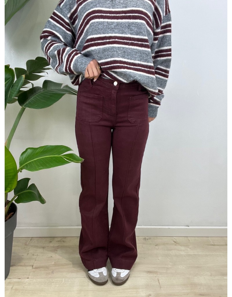 Jeans in tessuto elastico modello vita alta con due taschini.