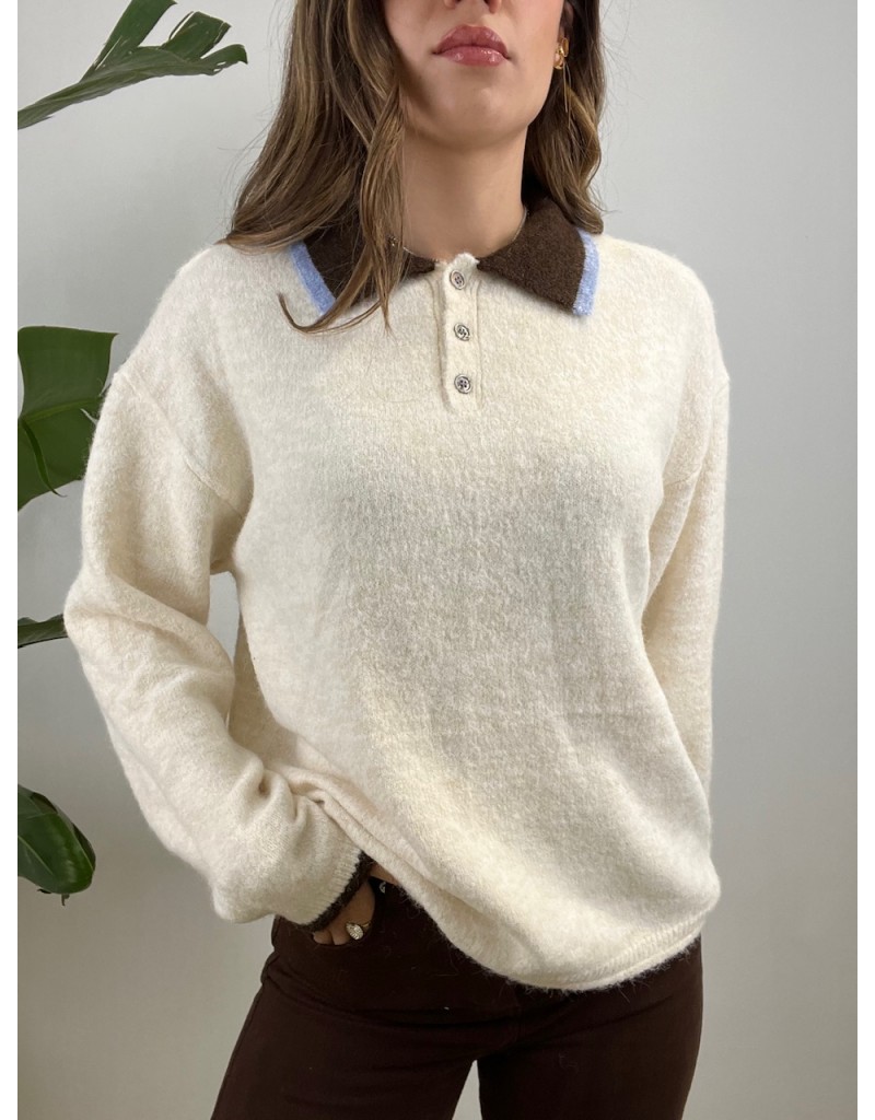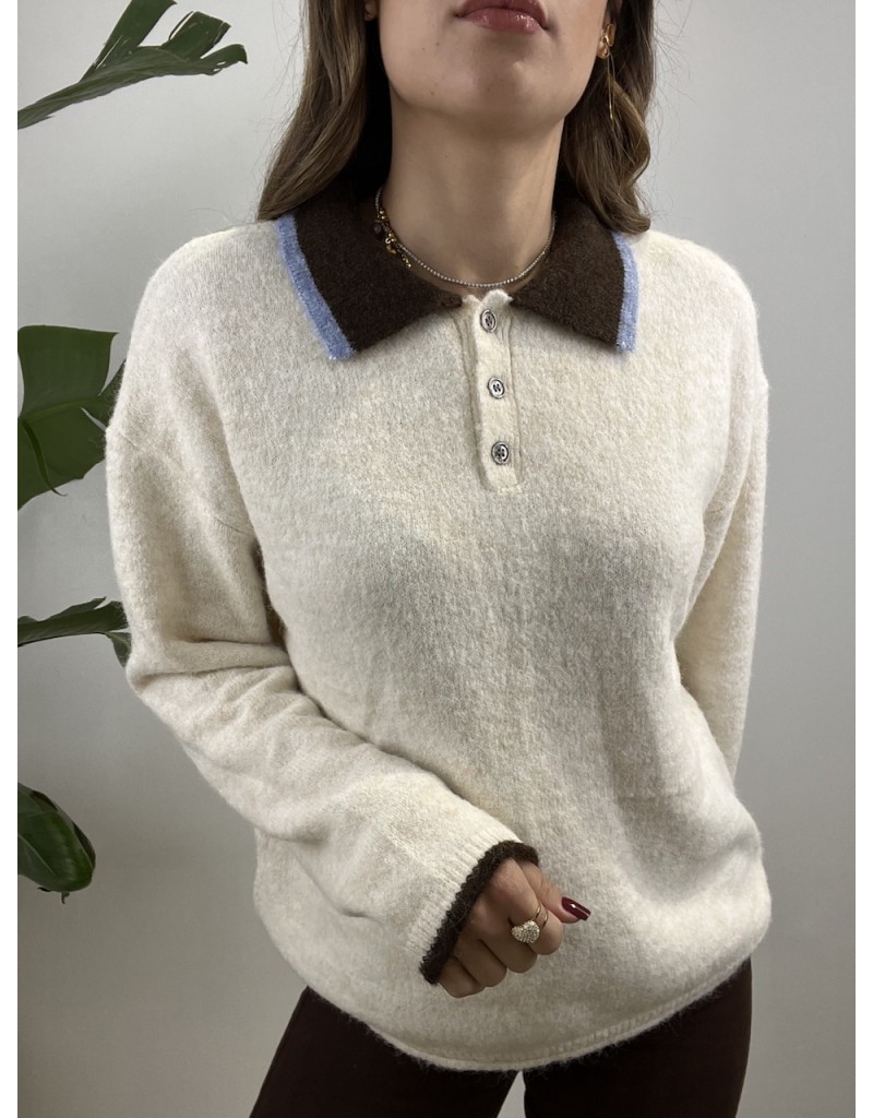 Pullover in maglia mornbida e calda con colletto a contrasto.
