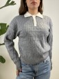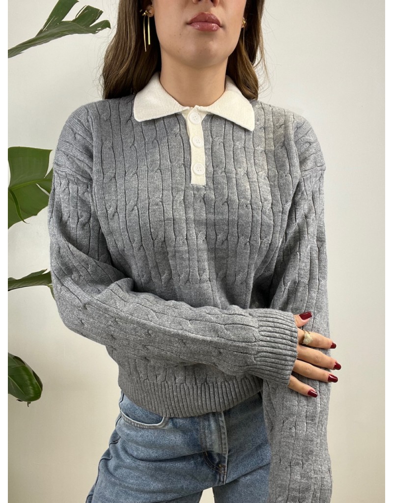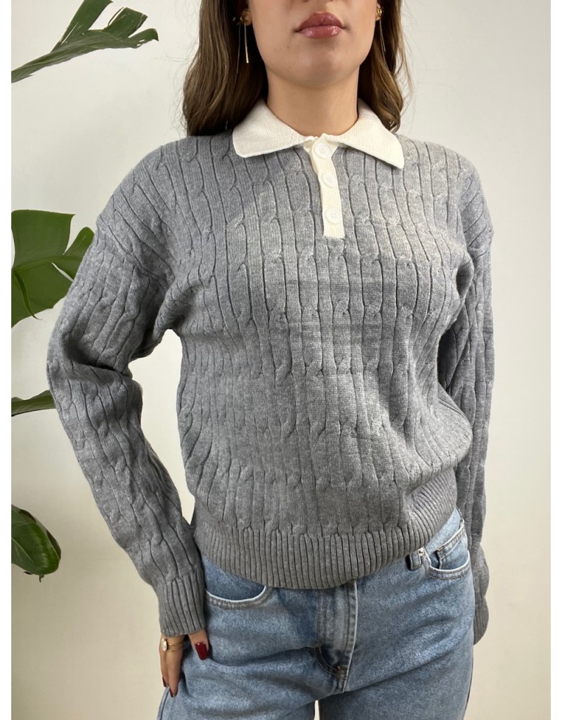 Pullover modello polo con colletto a contrasto e treccioni.