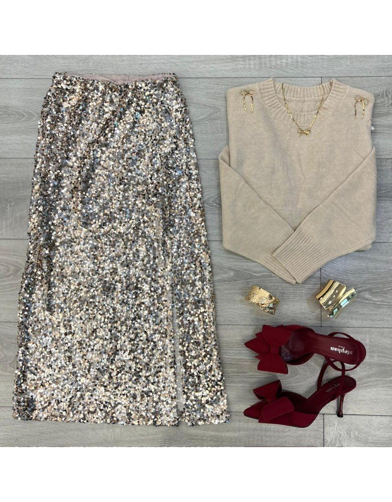 Gonna midi con paillettes.