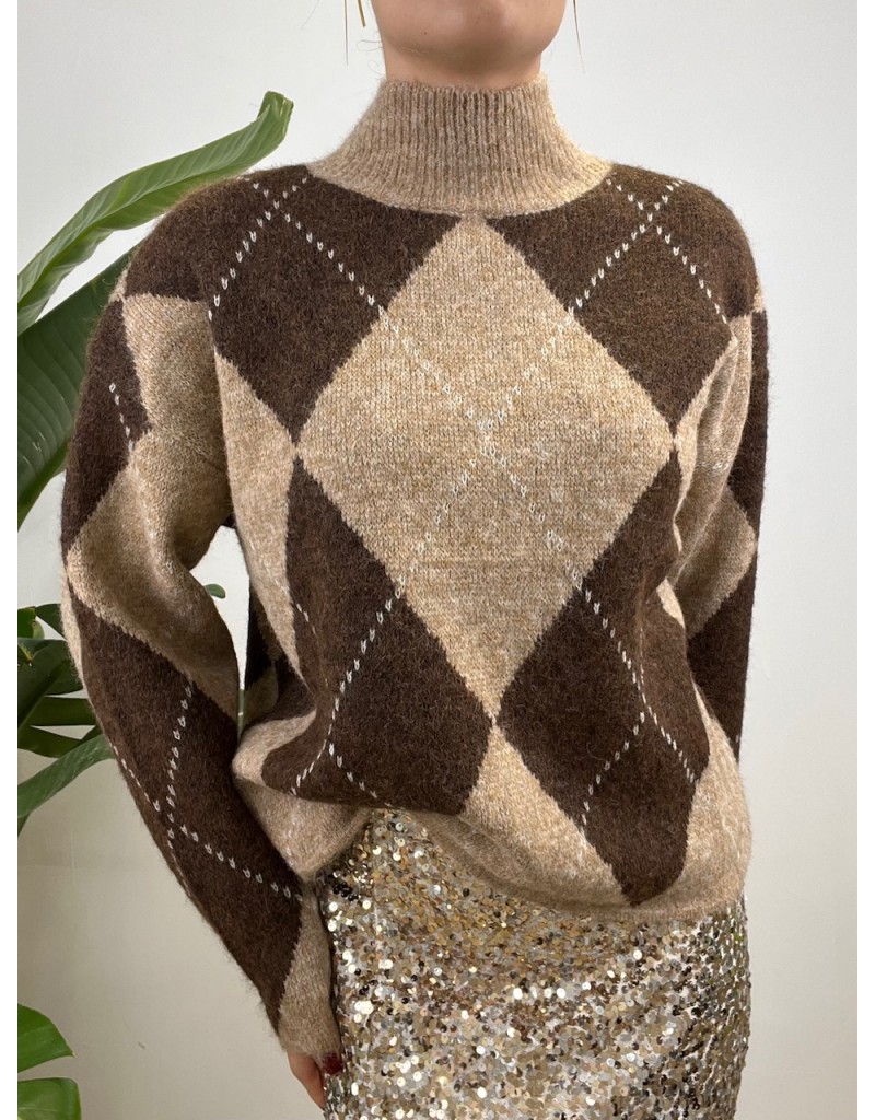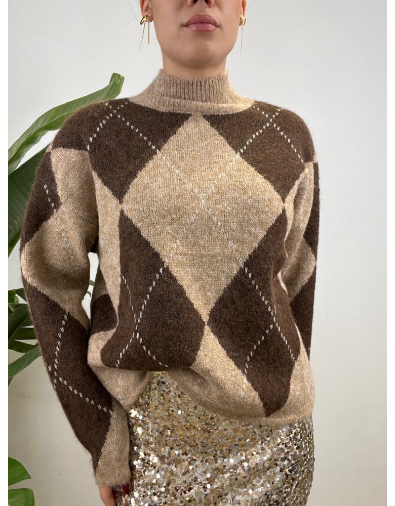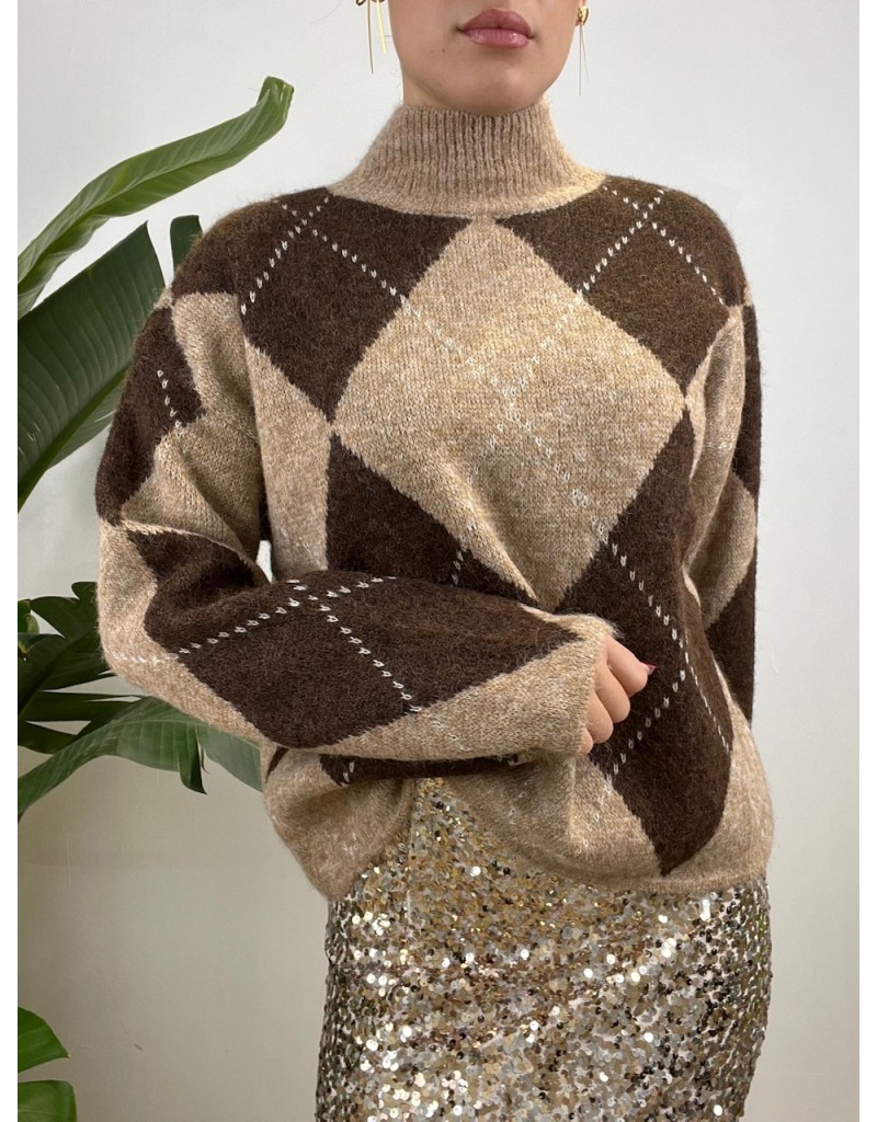 Pullover mezzo collo con fantasia a quadri