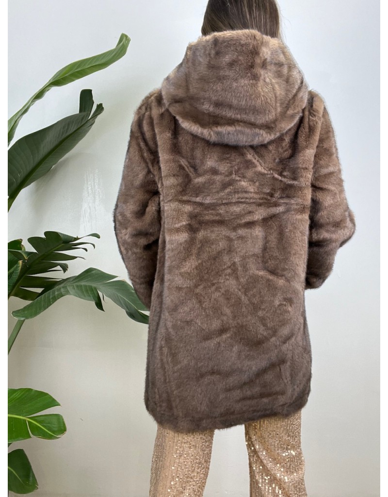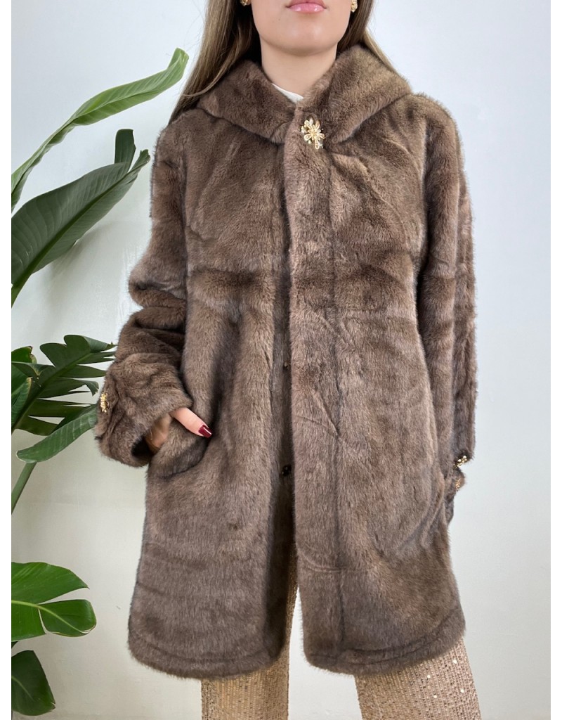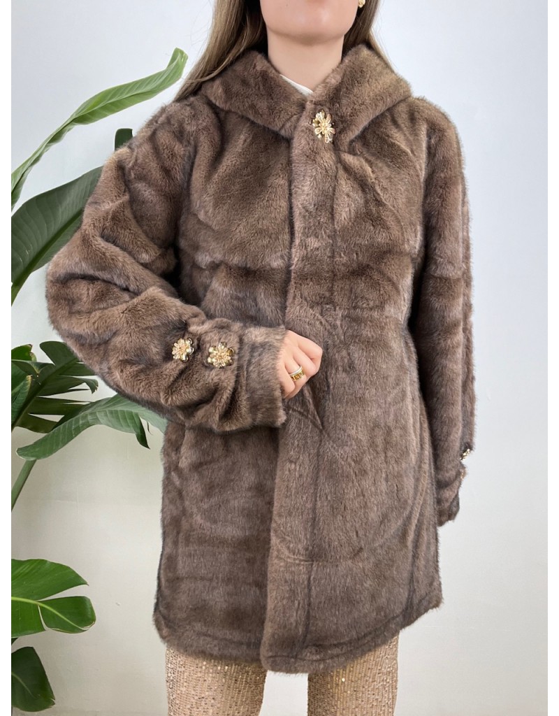 Cappotto in ecopelliccia con bottoni gioiello.