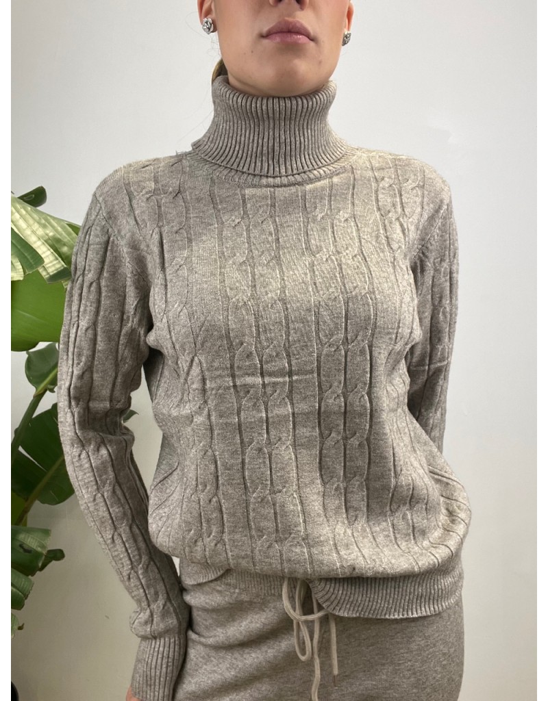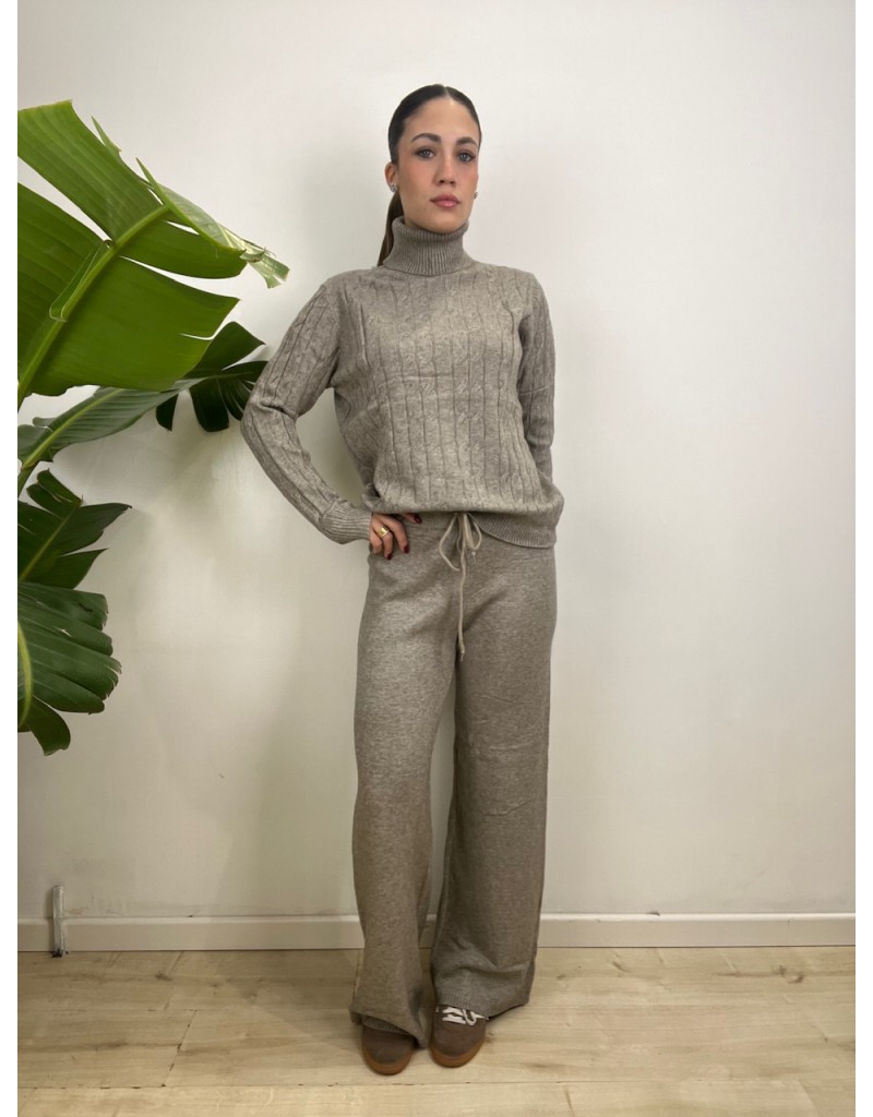 Coordinato in maglia con treccioni.