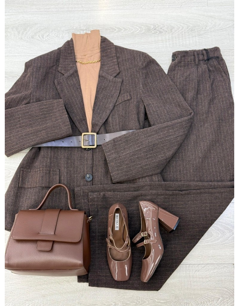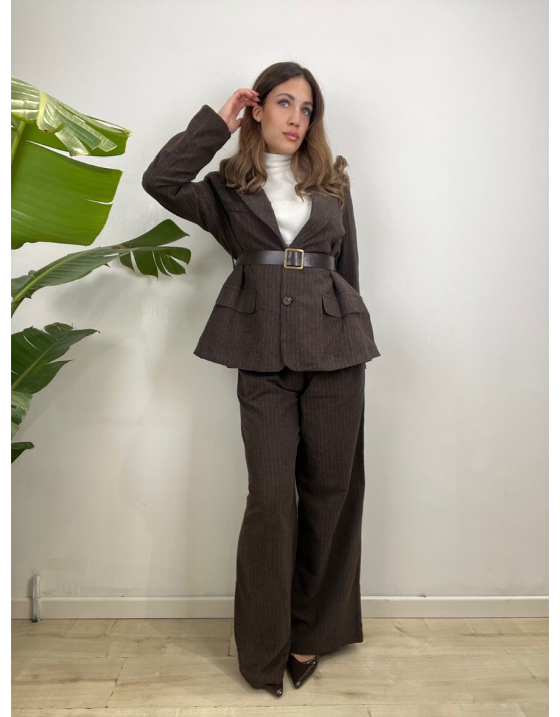Giacca con cintura compresa, pantaloni con molla in vita.