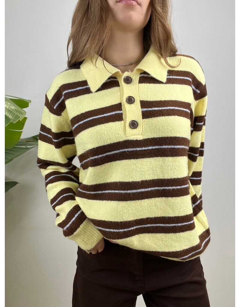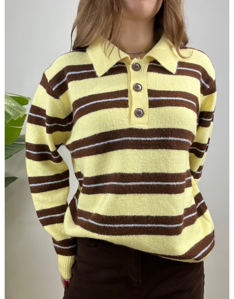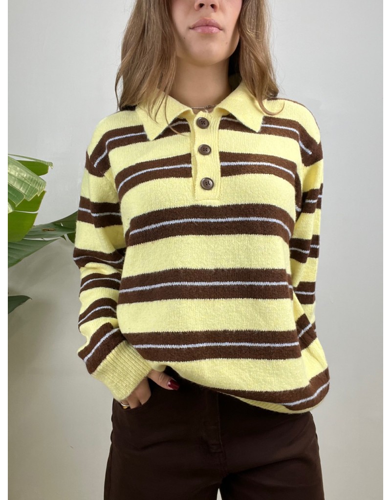 Pullover modello polo in maglia morbida con righe orizzontali.