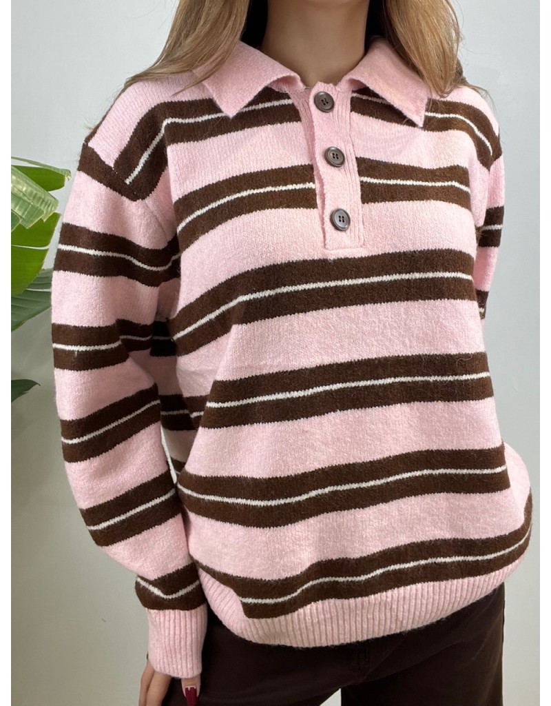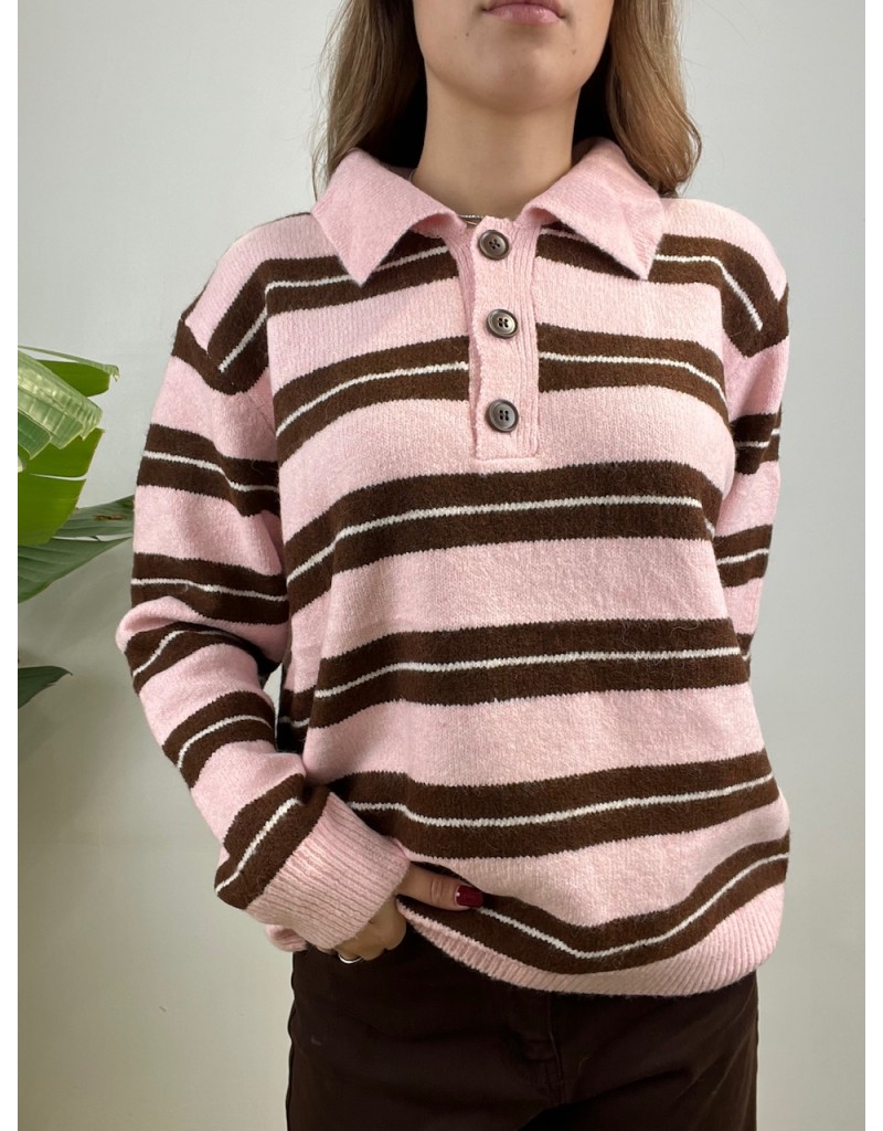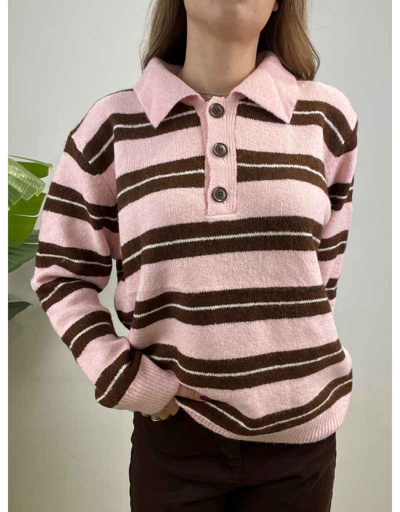 Pullover modello polo in maglia morbida con righe orizzontali.