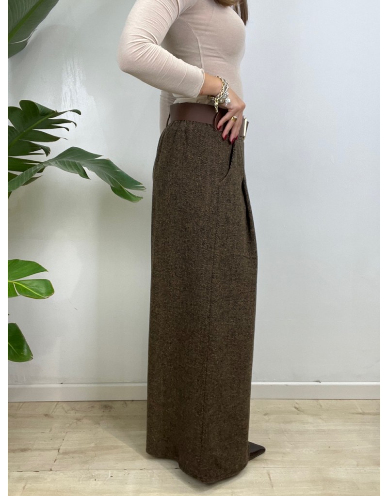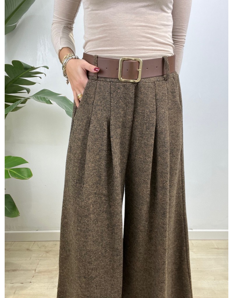 Pantaloni spigati con molla in vita e cinturone.