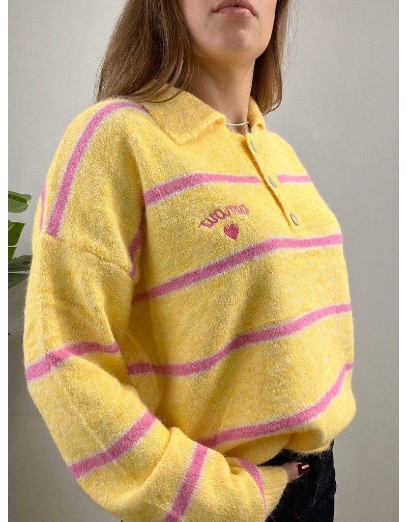 Pullover modello polo in maglia morbida con righe orizzontali.