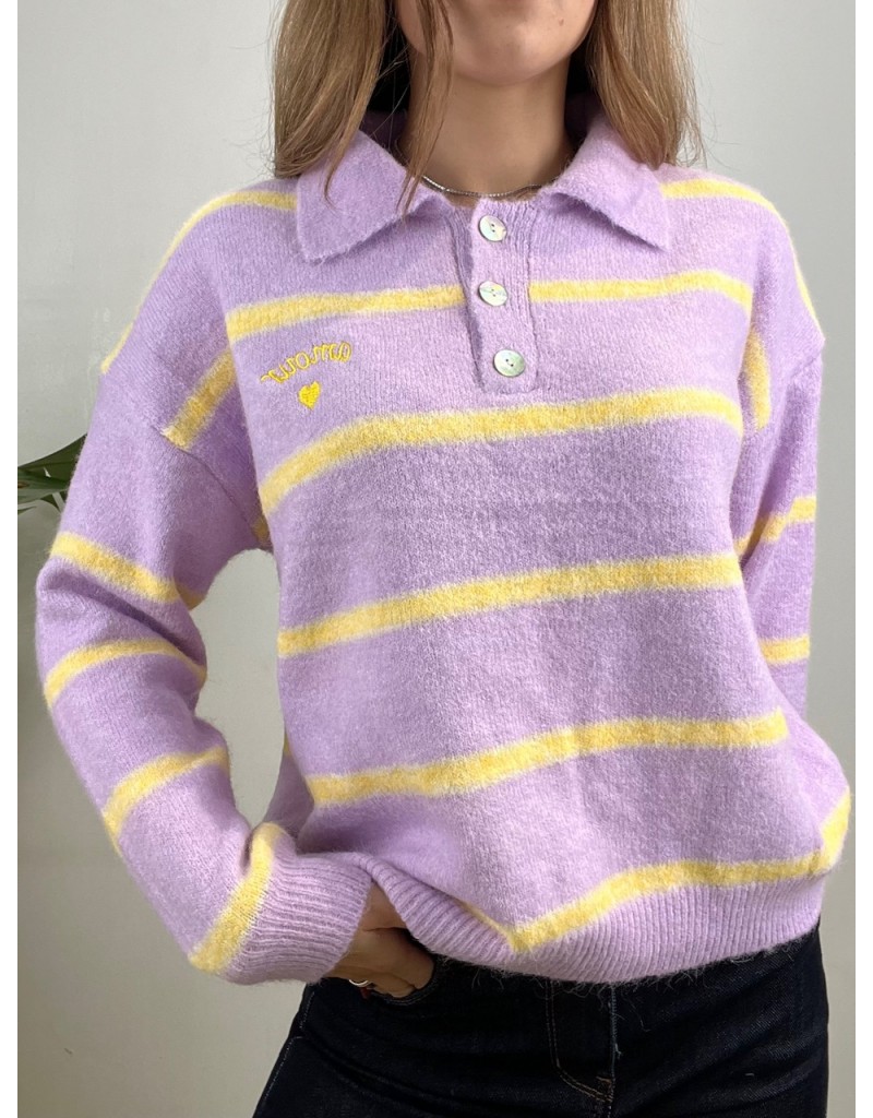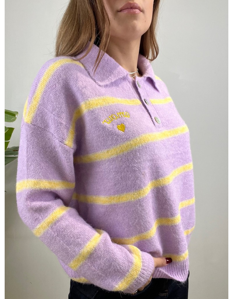 Pullover modello polo in maglia morbida con righe orizzontali.