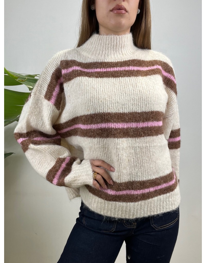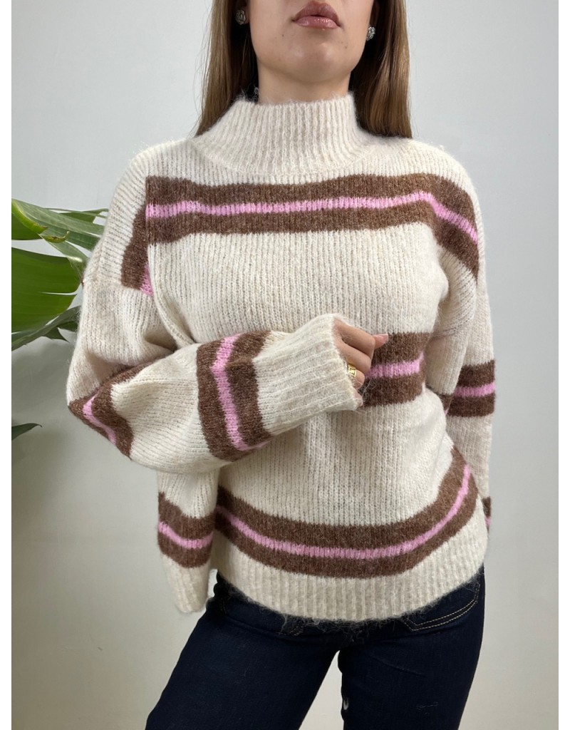 Pullover con righe orizzontali colorate, con mezzo collo.