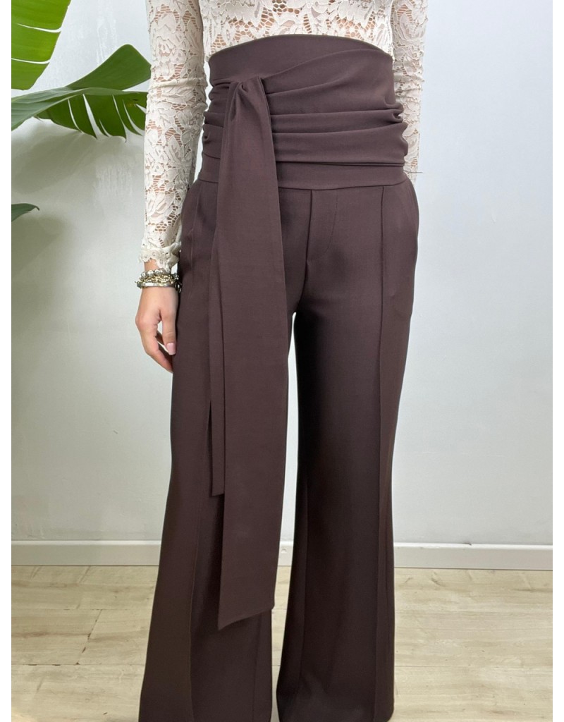Pantaloni con fusciacca, modello a vita alta. chiusura con zip a scomparsa.