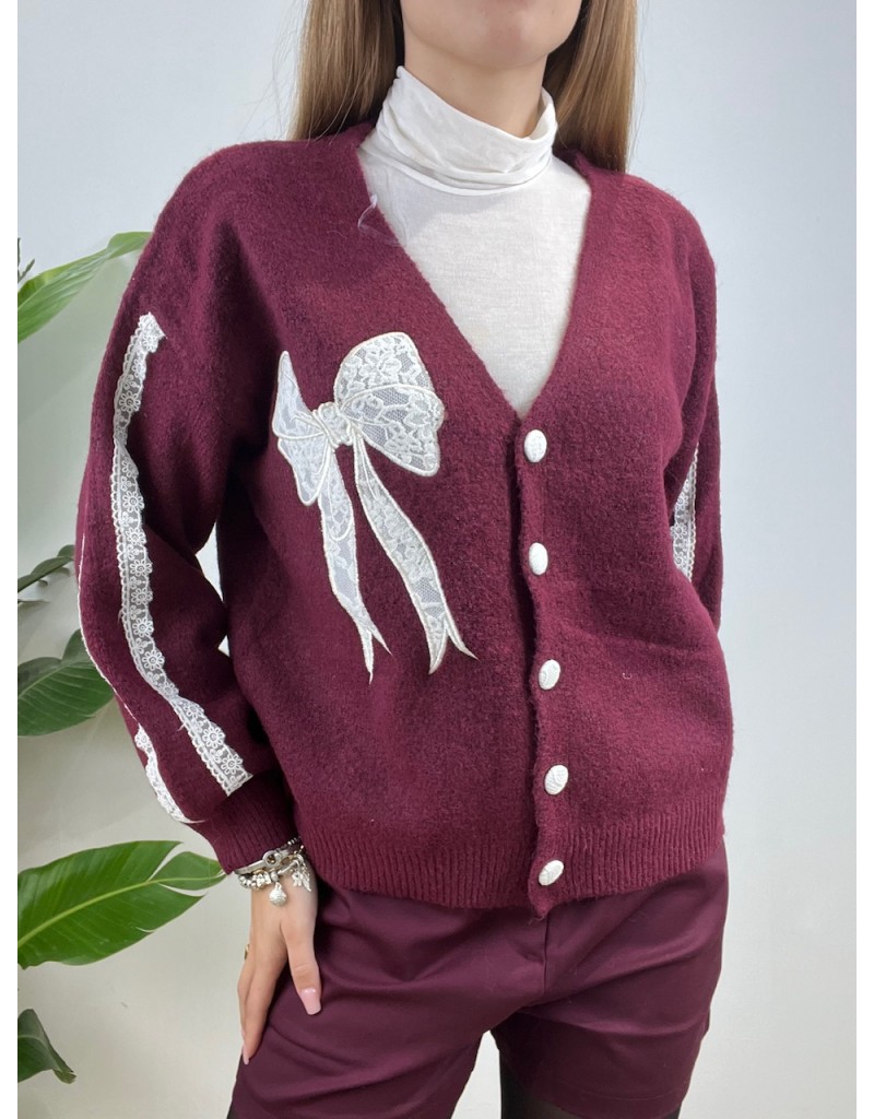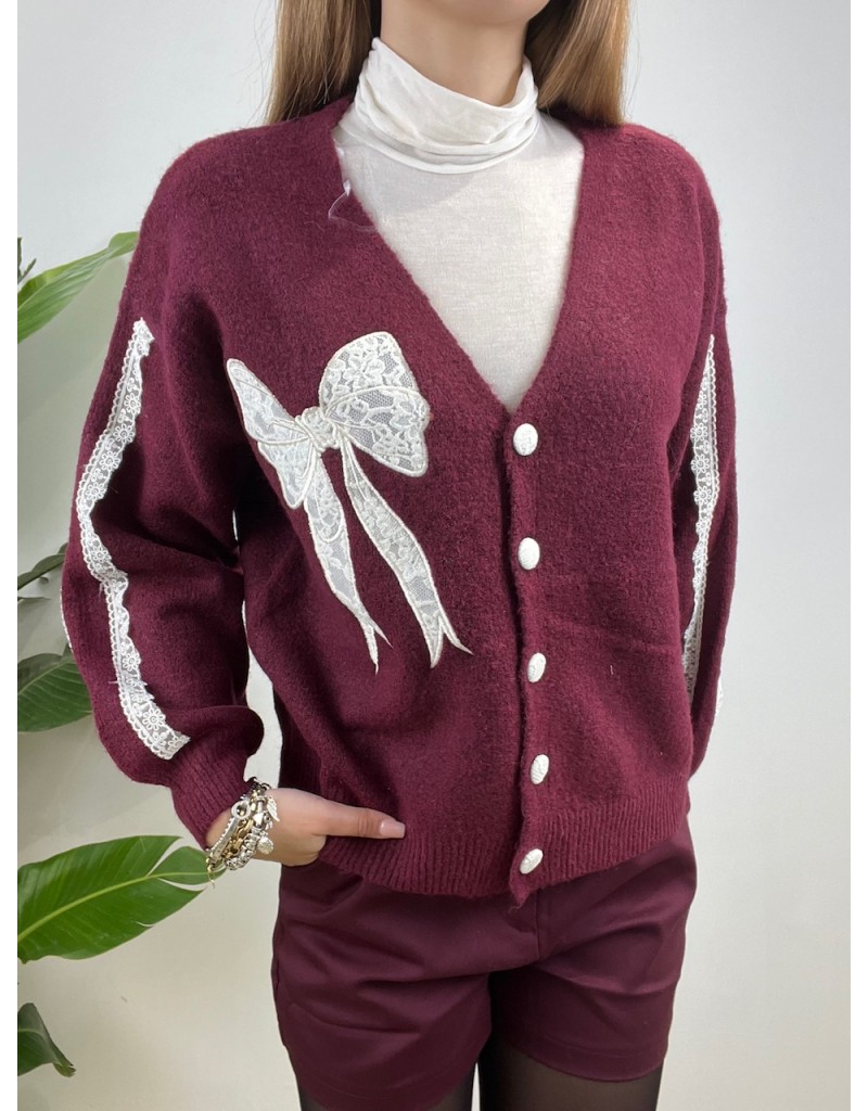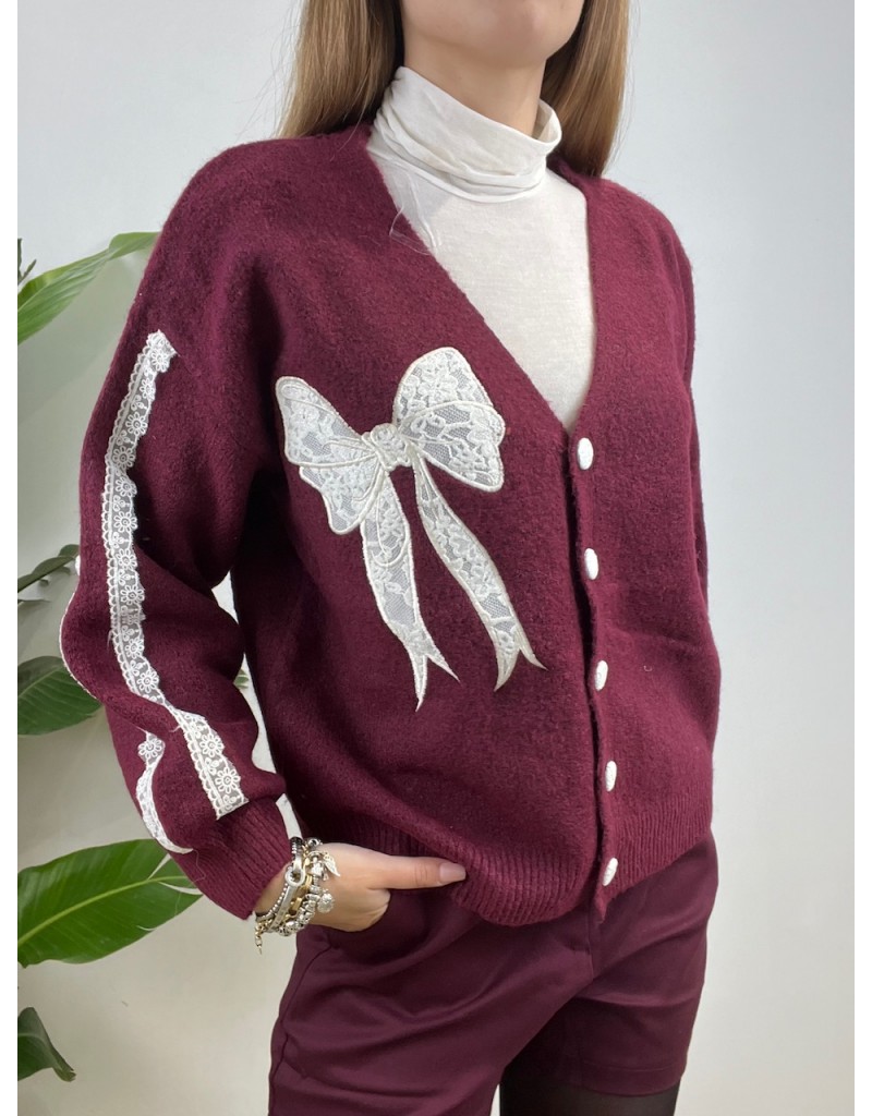 Cardigan con fiocco in pizzo.