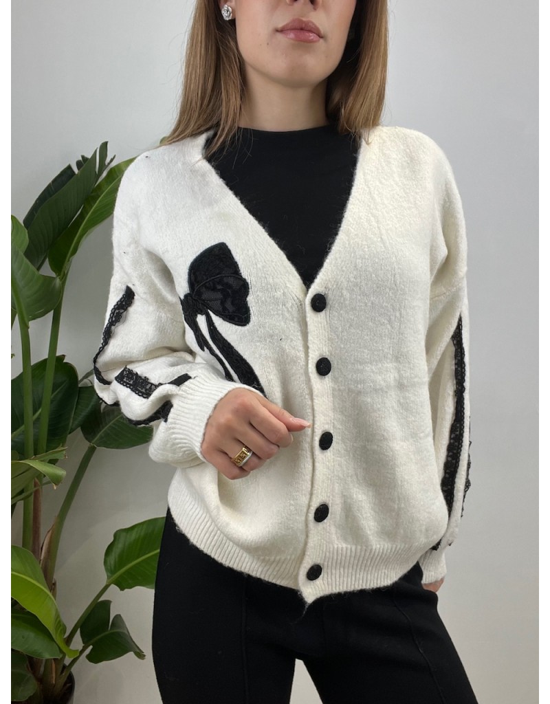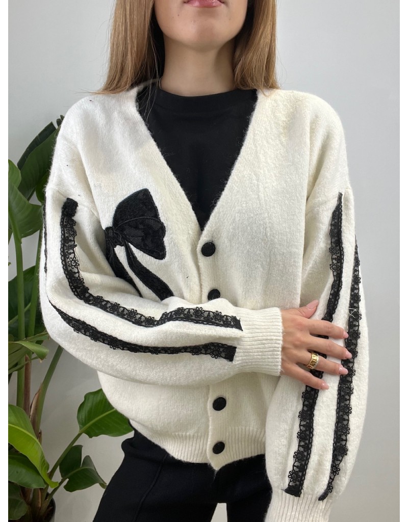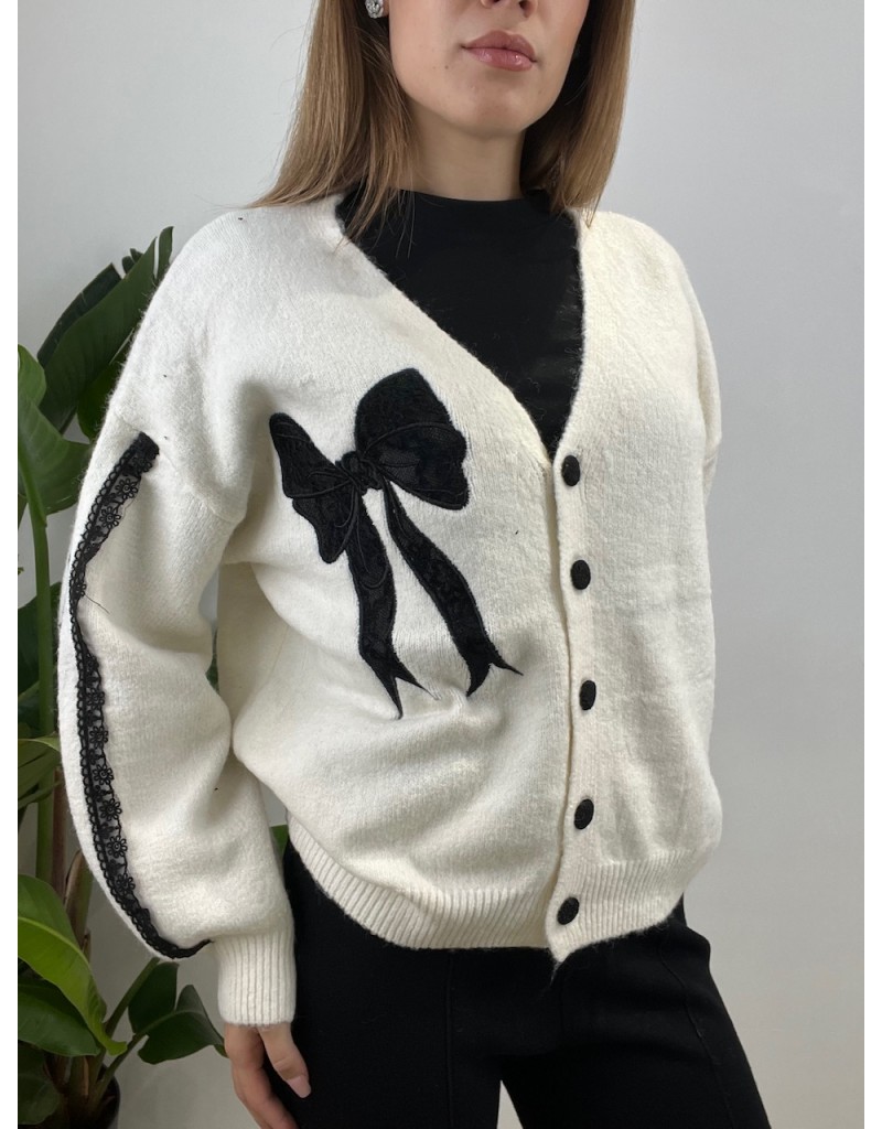Cardigan con fiocco in pizzo.