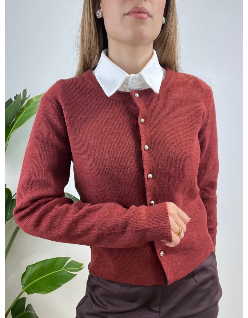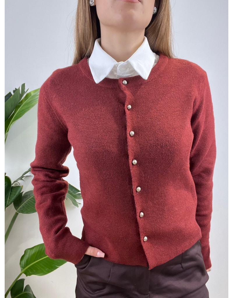 Cardigan semplice con bottoni metallici.