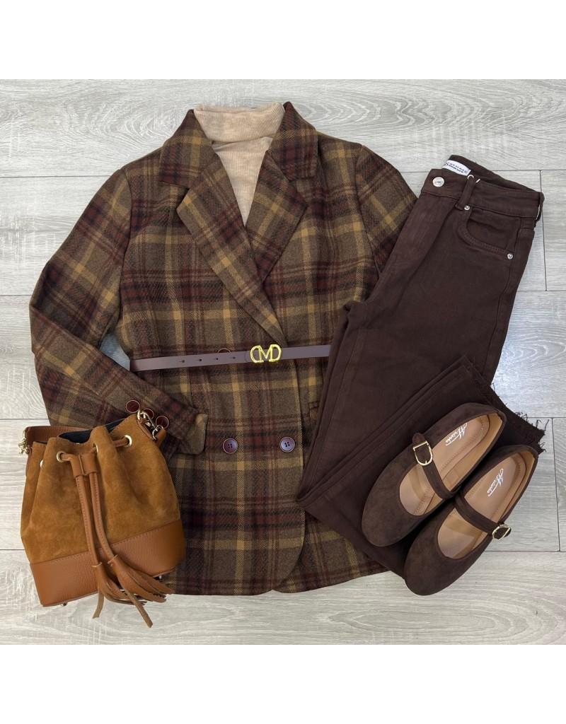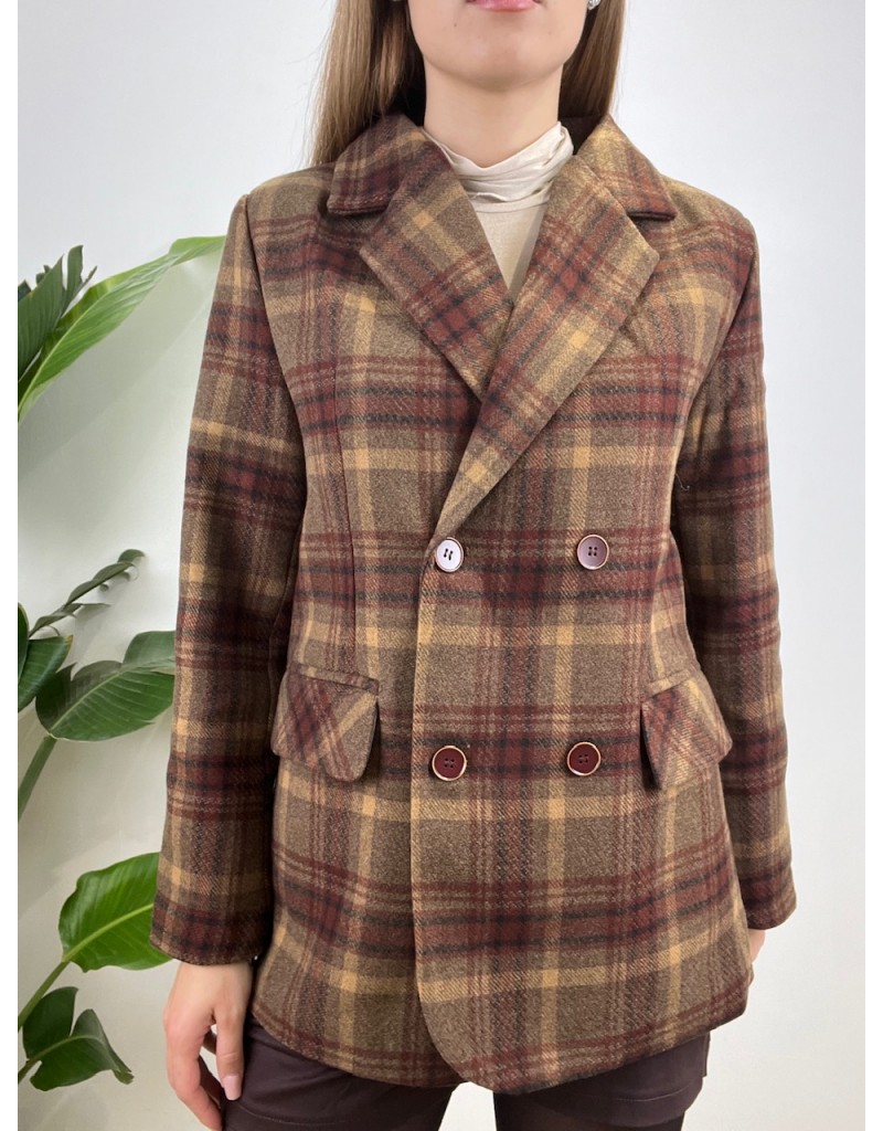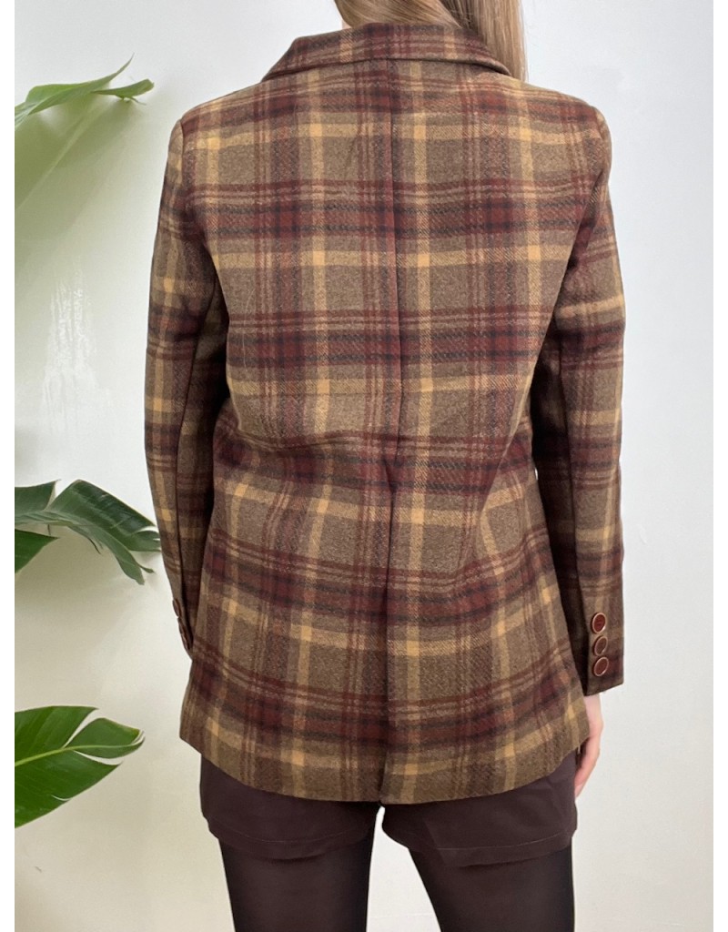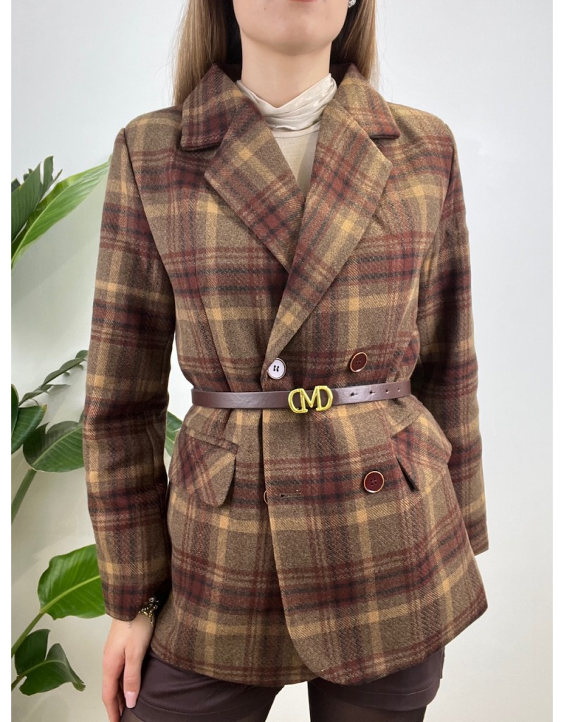 Blazer con cinturino e chiusura doppio petto.