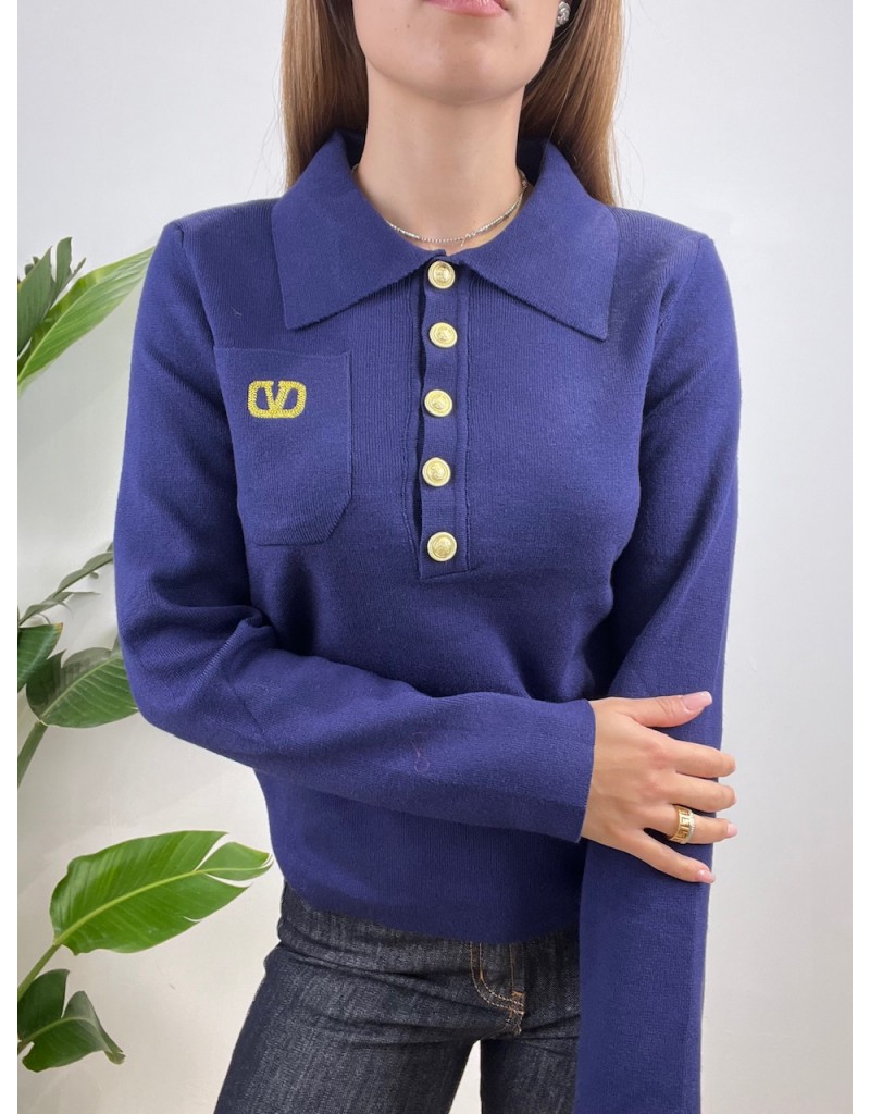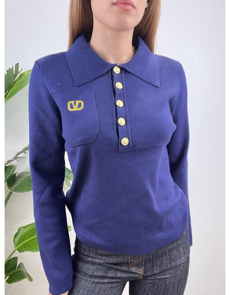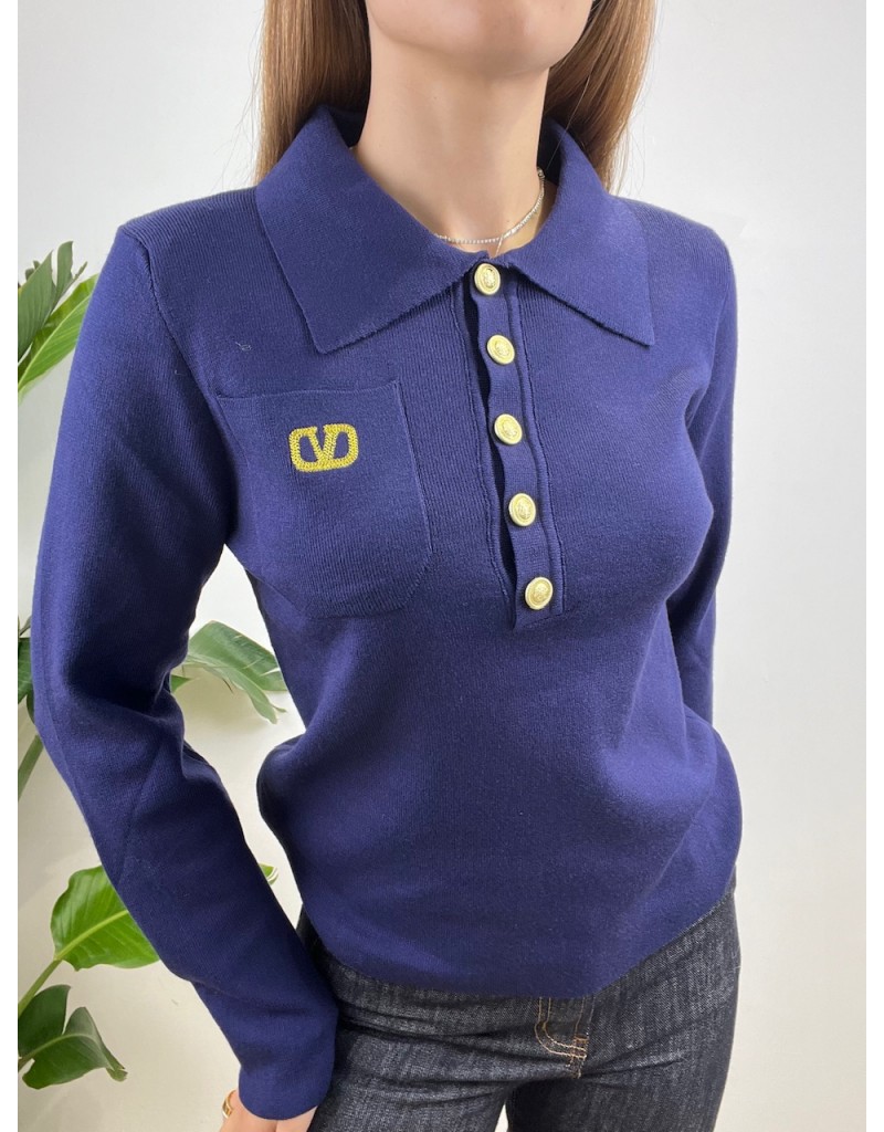 Pullover modello polo con bottoni oro e taschino.
